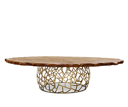 The Egyptians said that they were the tears of the God RA and in many other civilizations they were adores and considered as Gods. The liquor that they produce was, in many histories and cultures, connected to gold. And now all this royalty of the bees, originally called "APIS" in Latin, was the main inspiration for this wood and brass dining table. The imposing of this table is represented by a top that retraces the torso of big and ancient trees and in a base inspired on the golden beehives, that together results in a piece of nature translated into a piece of furniture.