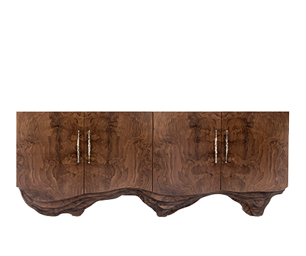 Huang is a mountain range in eastern China known for its spectacular scenery. Inspired by this magnificence, our designers created HUANG Sideboard. It features an outside in walnut root veneer, an inside in rosewood veneer and details in matte hammered brushed aged brass. This wood sideboard brings instant character to a modern interior design.