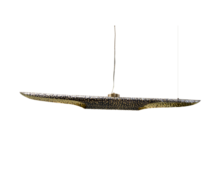 VELLUM is the elegance of nature transformed by the man´s hand. It comes from the ancient manuscripts, where messages were written in VELLUM, a fine and translucent material. VELLUM lighting brings to the spaces the warm light of written stories passed through generations. COmposed by hammered brass, its elegance exhales the power of resistance through times as the written stories never dies. Every story you create in your space will be written ny the warm lighting words of VELLUM, just enjoy all these golden memories.