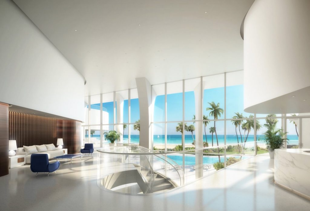 Rising 57 stories above Sunny Isles Beach and the sparkling blue Atlantic Ocean, PYR translates the strikingly modern architectural form of the newly constructed Jade Signature tower into a warm and welcoming interior residential experience. Curved lines and soaring volumes celebrate the building architecture and the spirit of Miami, while intimate alcoves, midcentury modern furnishings and rich materials infuse the building with warmth and comfort.