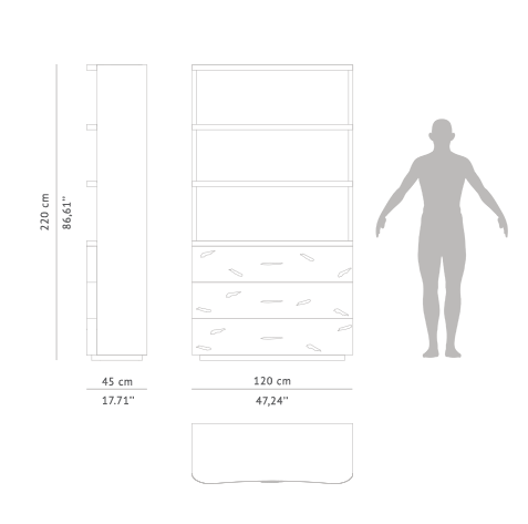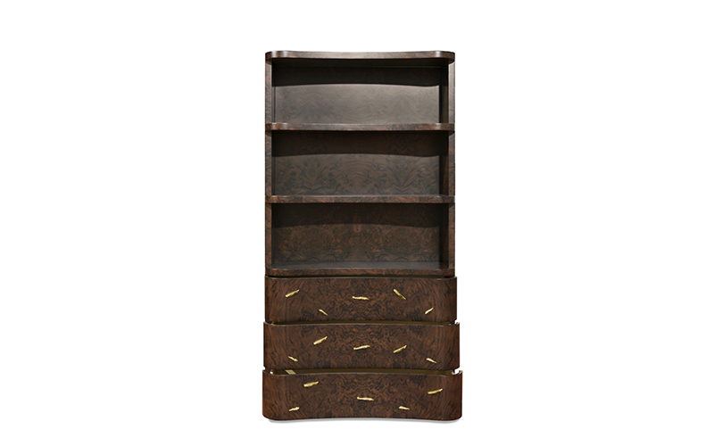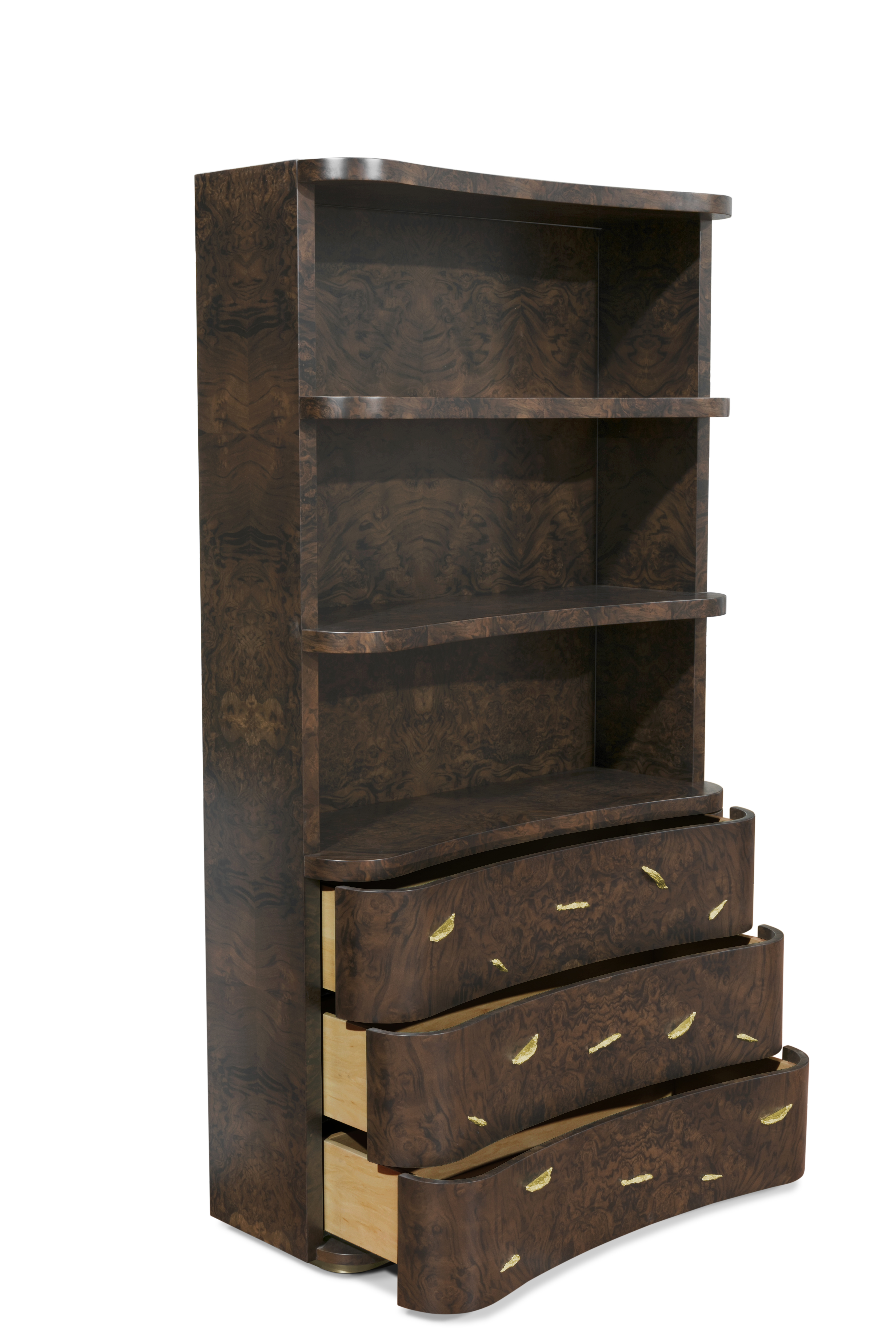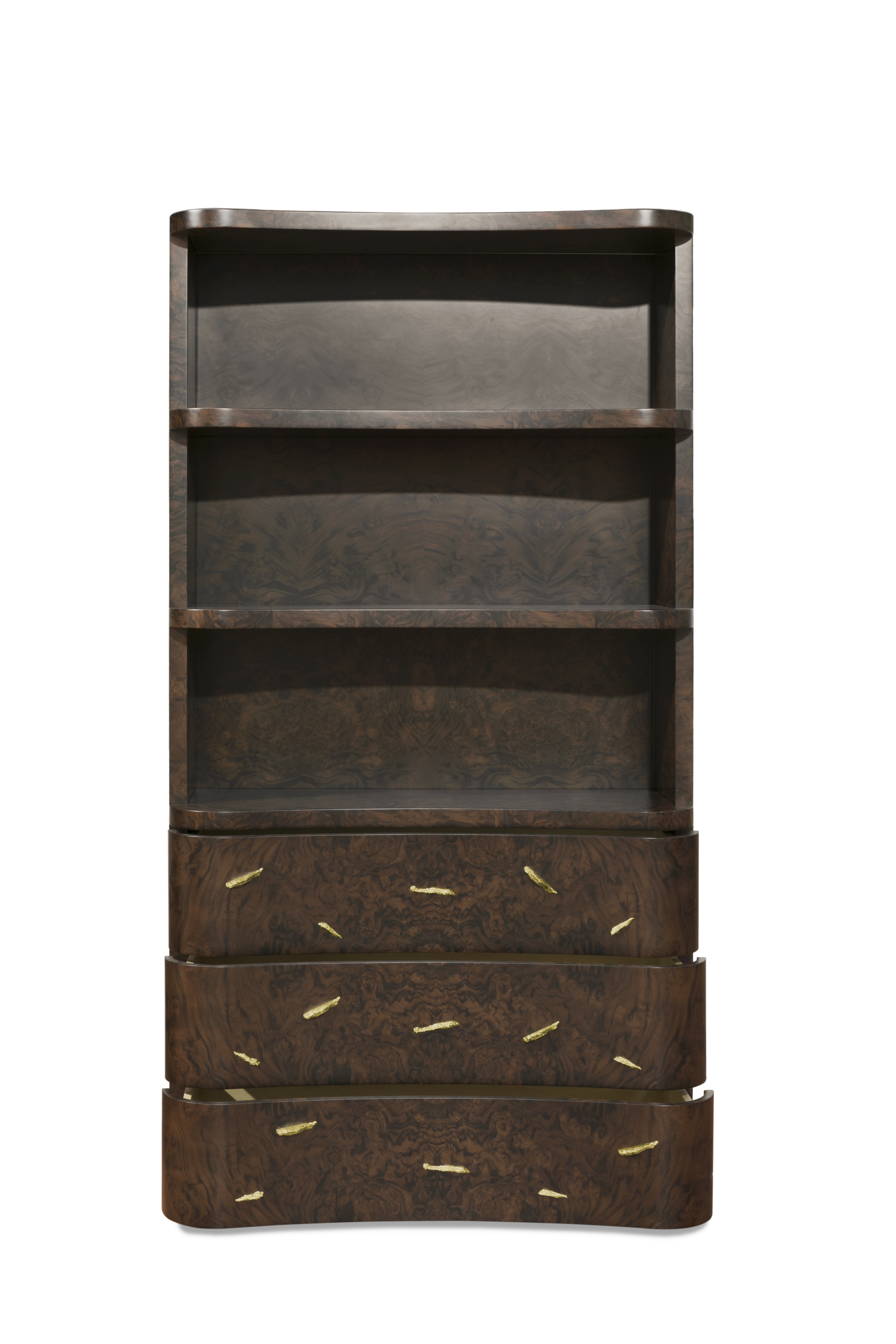 evolutionary process unfolds. The BARAKA Bookcase has the main body structure in matte walnut root