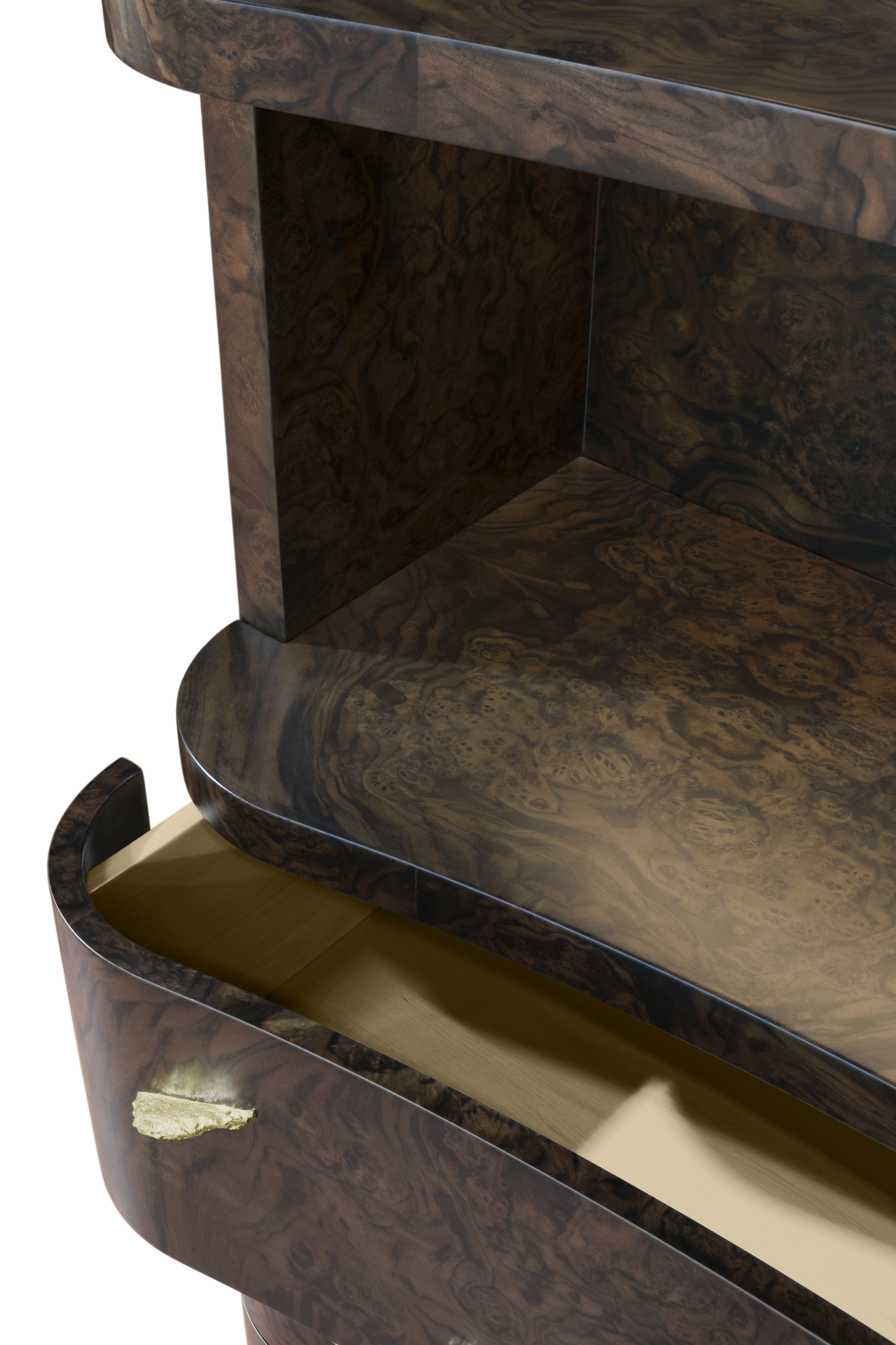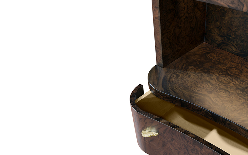 drawers is covered in bird's eye wood veneer. Charismatic by its never-ending contrasts between timeless