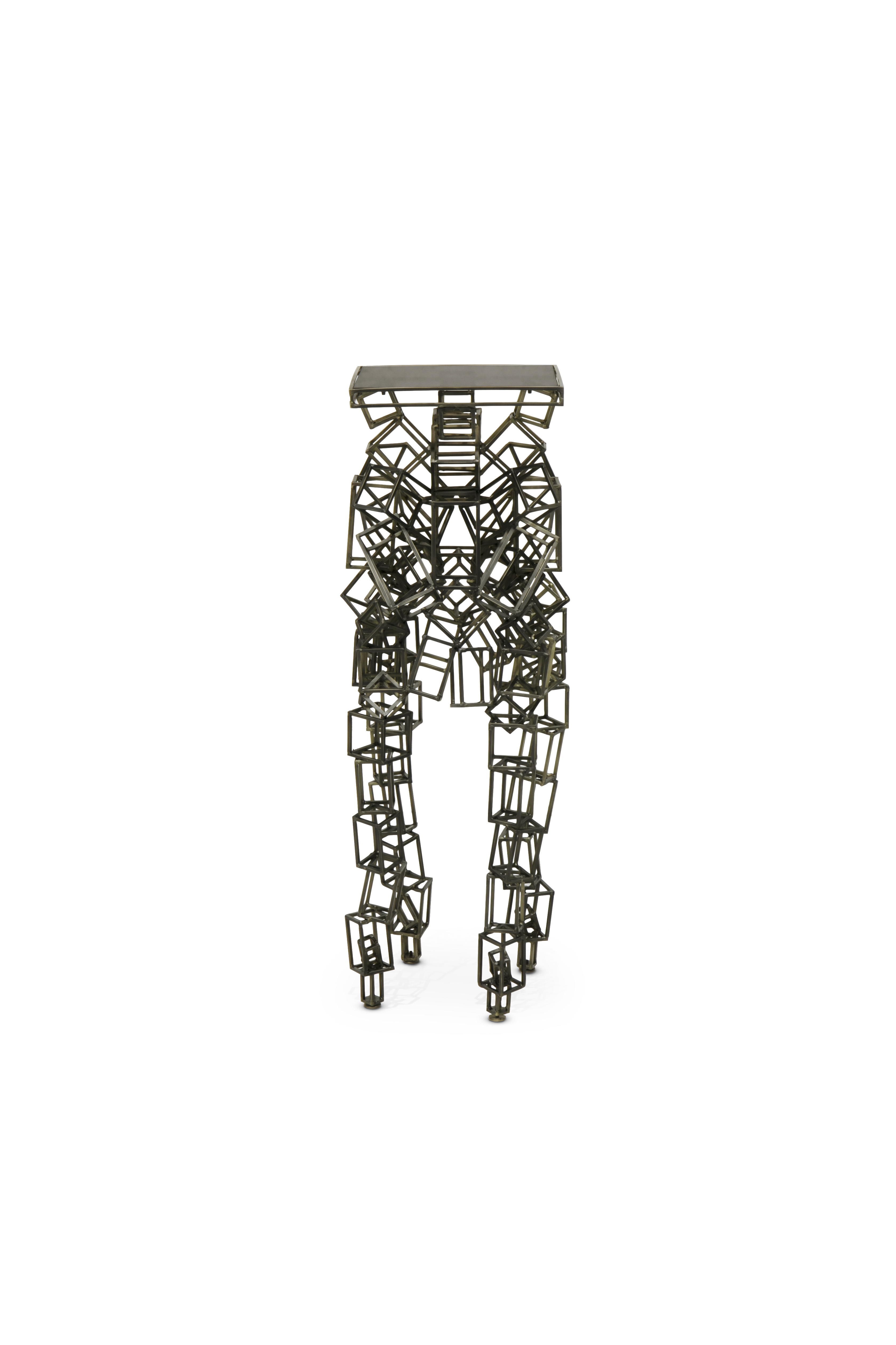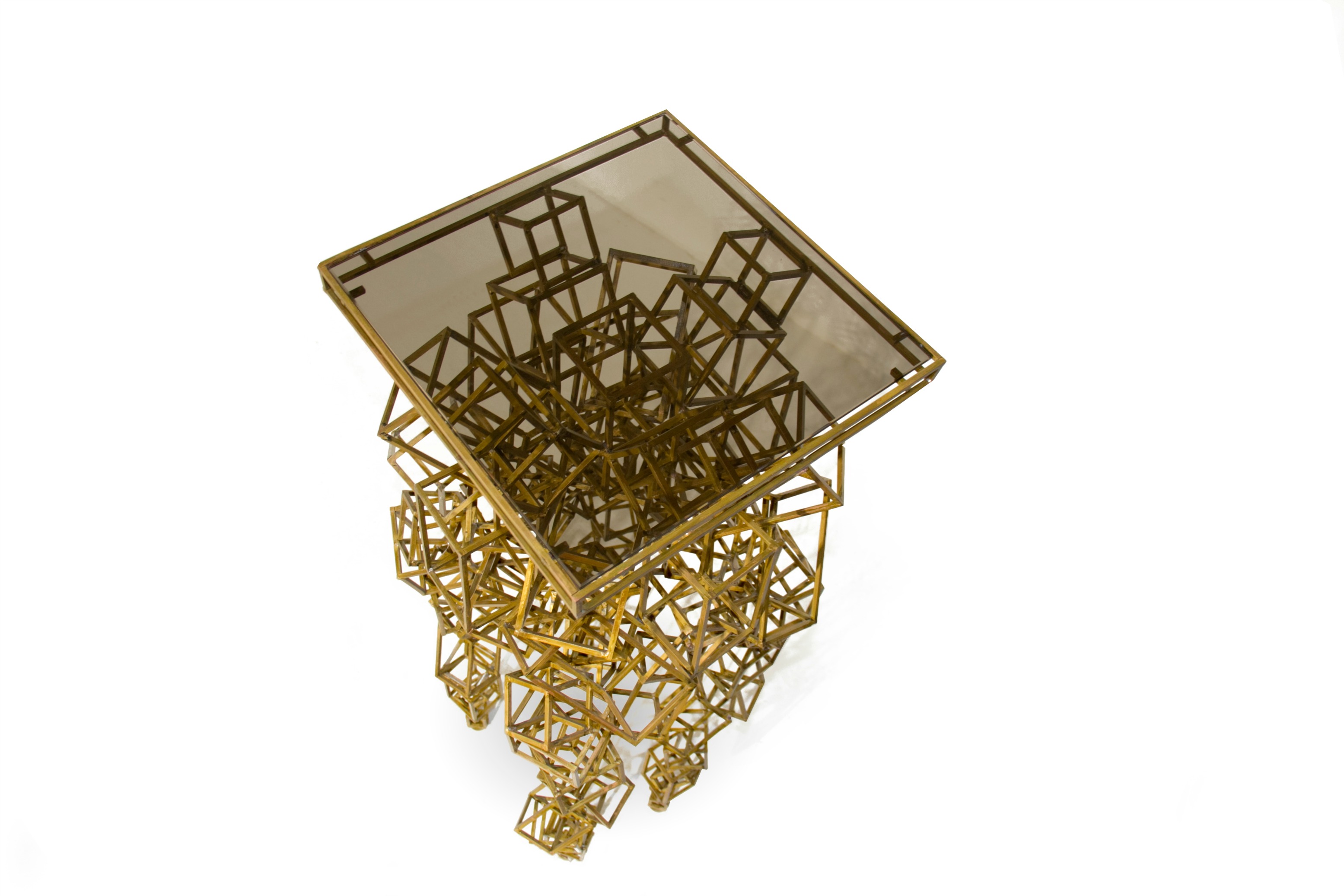Inspired by one of the brightest and largest constellations in the sky, CYGNUS Display features a top in bronze glass and a structure composed of several rectangles and squares in matte brass singularly placed by our artisans. Let yourself get caught by the positive energy of this midcentury modern display table by bringing it to your home.