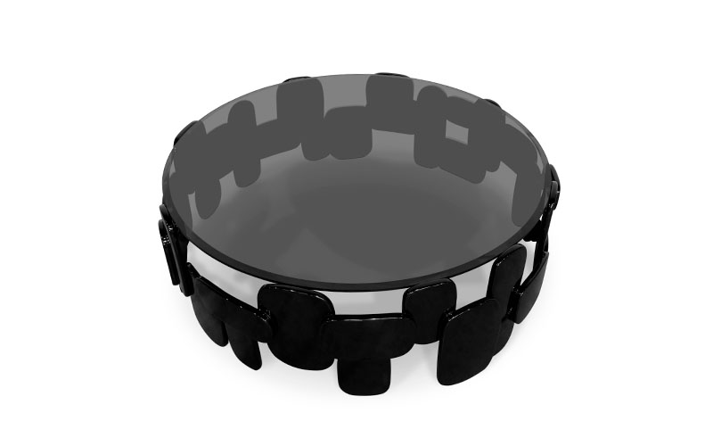 The Goroka tribe is known for its dazzling explosion of colour and feathers as a way to impress the enemy. GOROKA Center Table takes inspiration from this tribe located in Papua New Guinea. It is coated in a glossy black lacquer making it a memorable round centre table to place in any interior design.