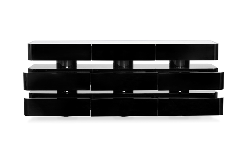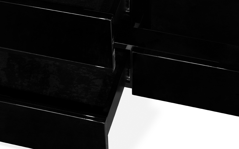 A Shinto shrine is a structure whose main purpose is to house - ‘enshrine’ - one or more ‘kami’ or gods. Its most important chamber is used for the safekeeping of sacred objects. SHINTO I Console was conceived with the same purpose: with a gloss black lacquered structure and ash wood veneer white tabletop, this hallway console table with drawers will keep safe everything you set on it. It fits any modern classic set, with a touch of elegance and sophistication.