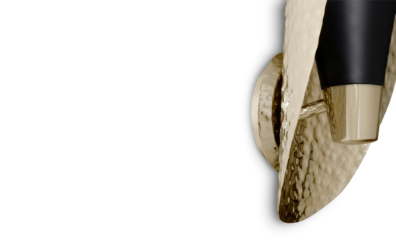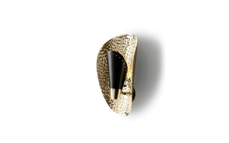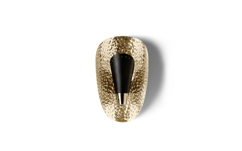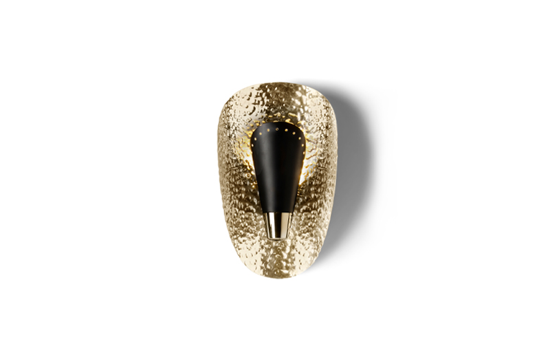 After a visit to Wat Arun, a Buddhist temple in Thailand, our designers were inspired to create ARUNA Wall Light in an attempt to recreate the beauty of the first morning light. Featuring a shell in hammered gold-plated brass and shade in matte lacquer, this single wall sconce is a metaphor for the rising sun.