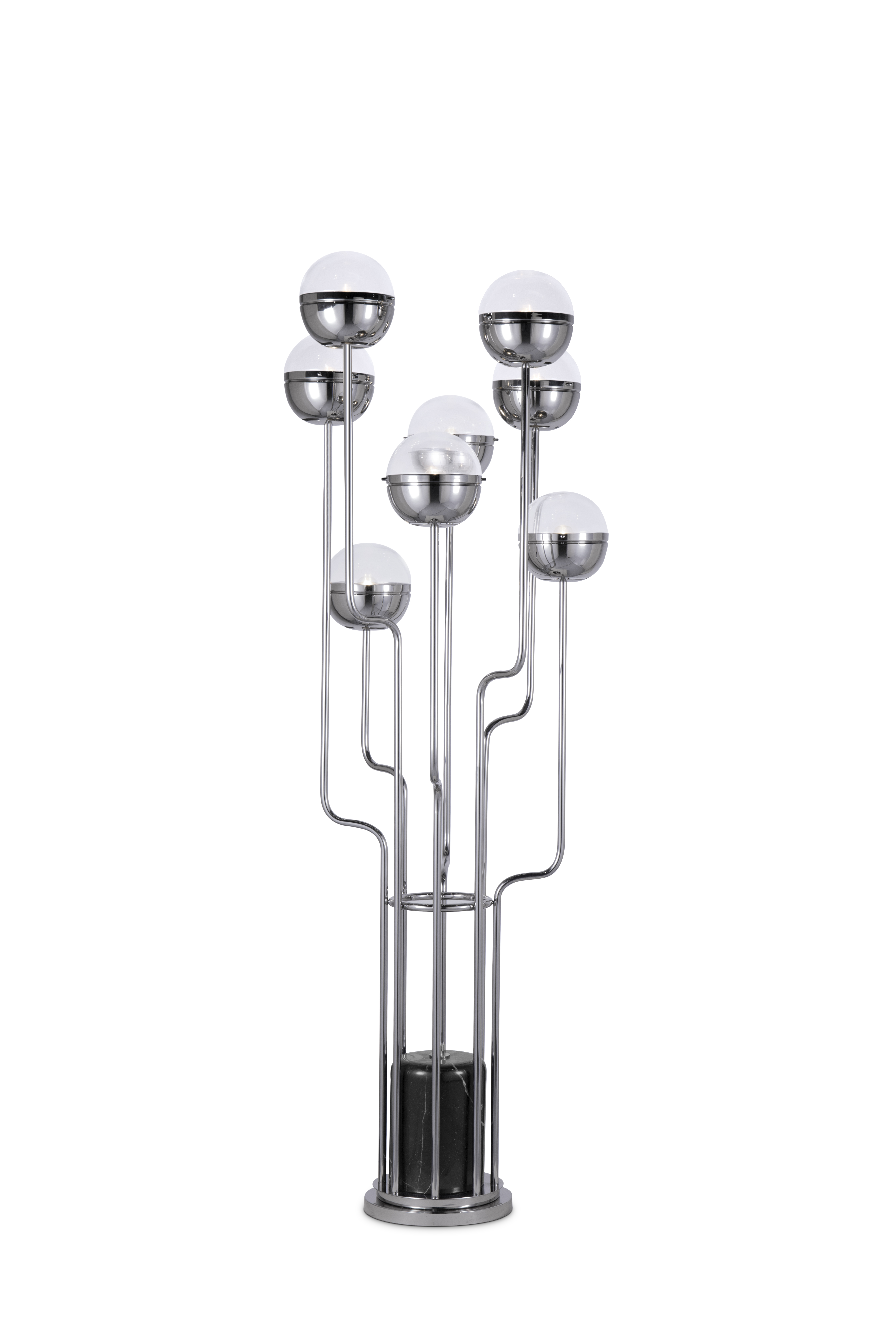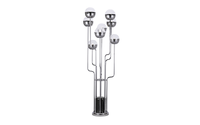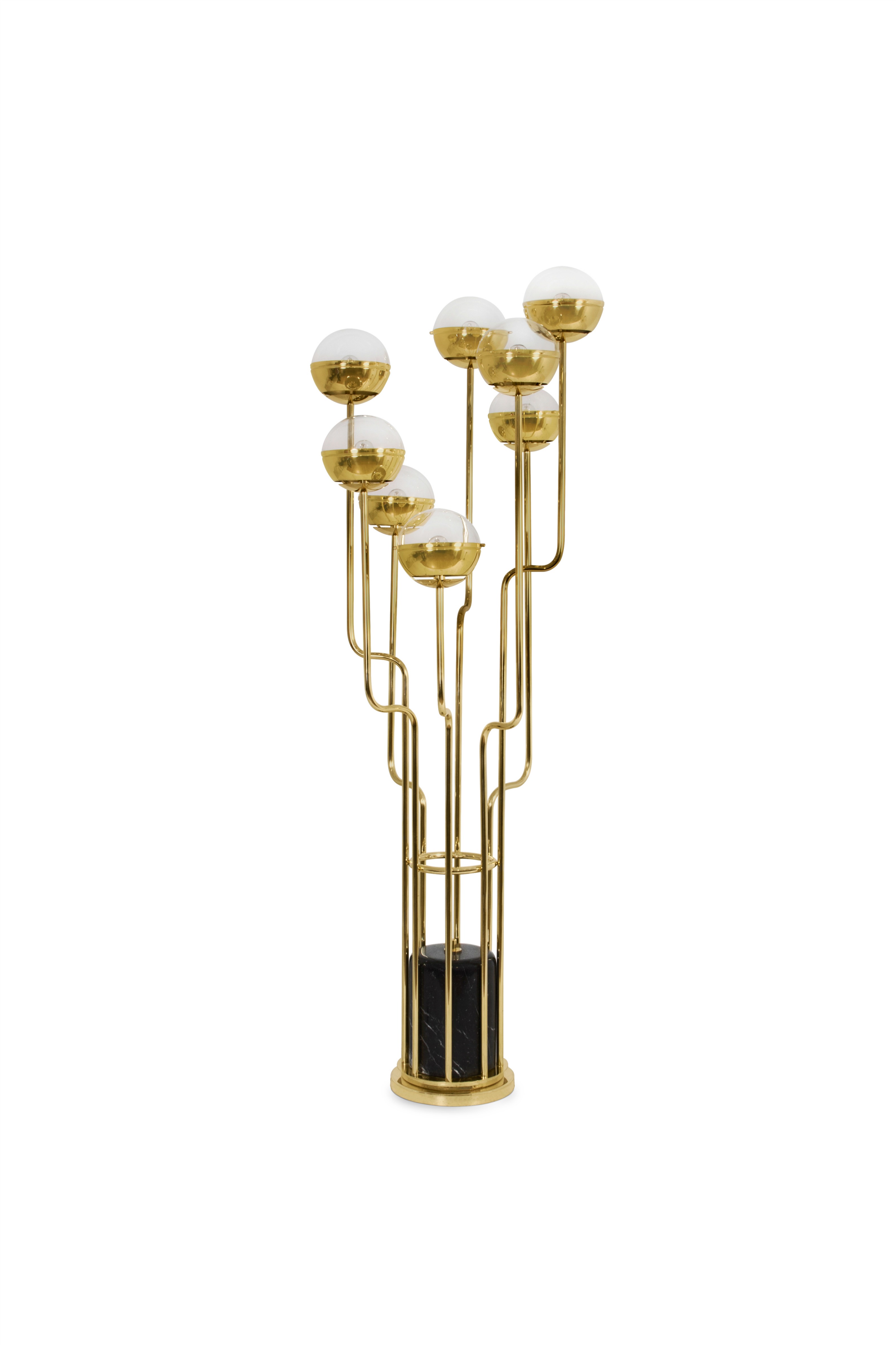 Part of the Kiribati islands group, Nikumaroro is known for its incredible coral atoll. It is the beauty of its corals that make NIKU Floor Light a rarity in contemporary lighting. Featuring a structure in gold plated brass, shaders in gold plated brass and glass and a base in black marble, this contemporary floor light will fill any home decor with exoticism.
