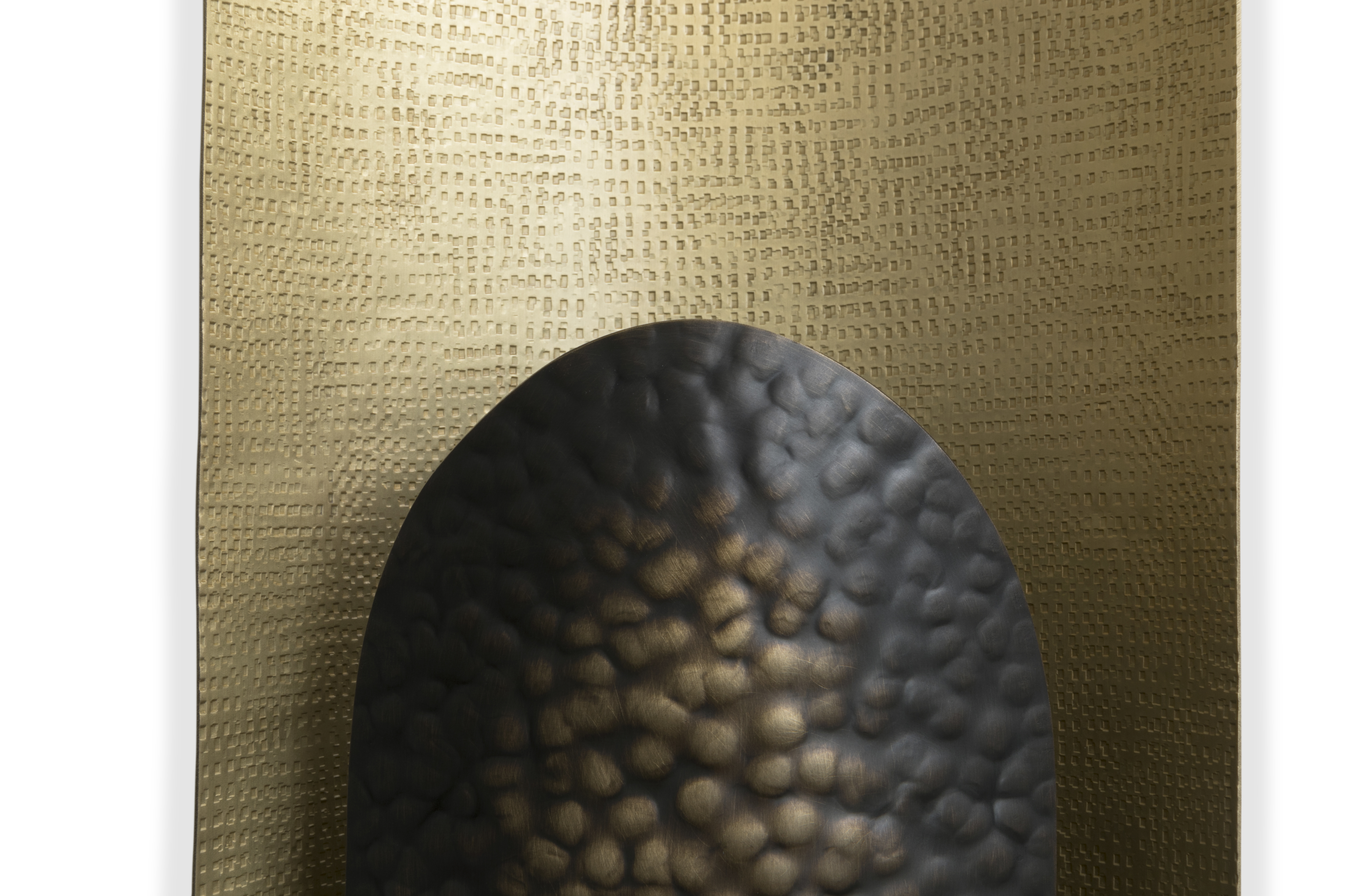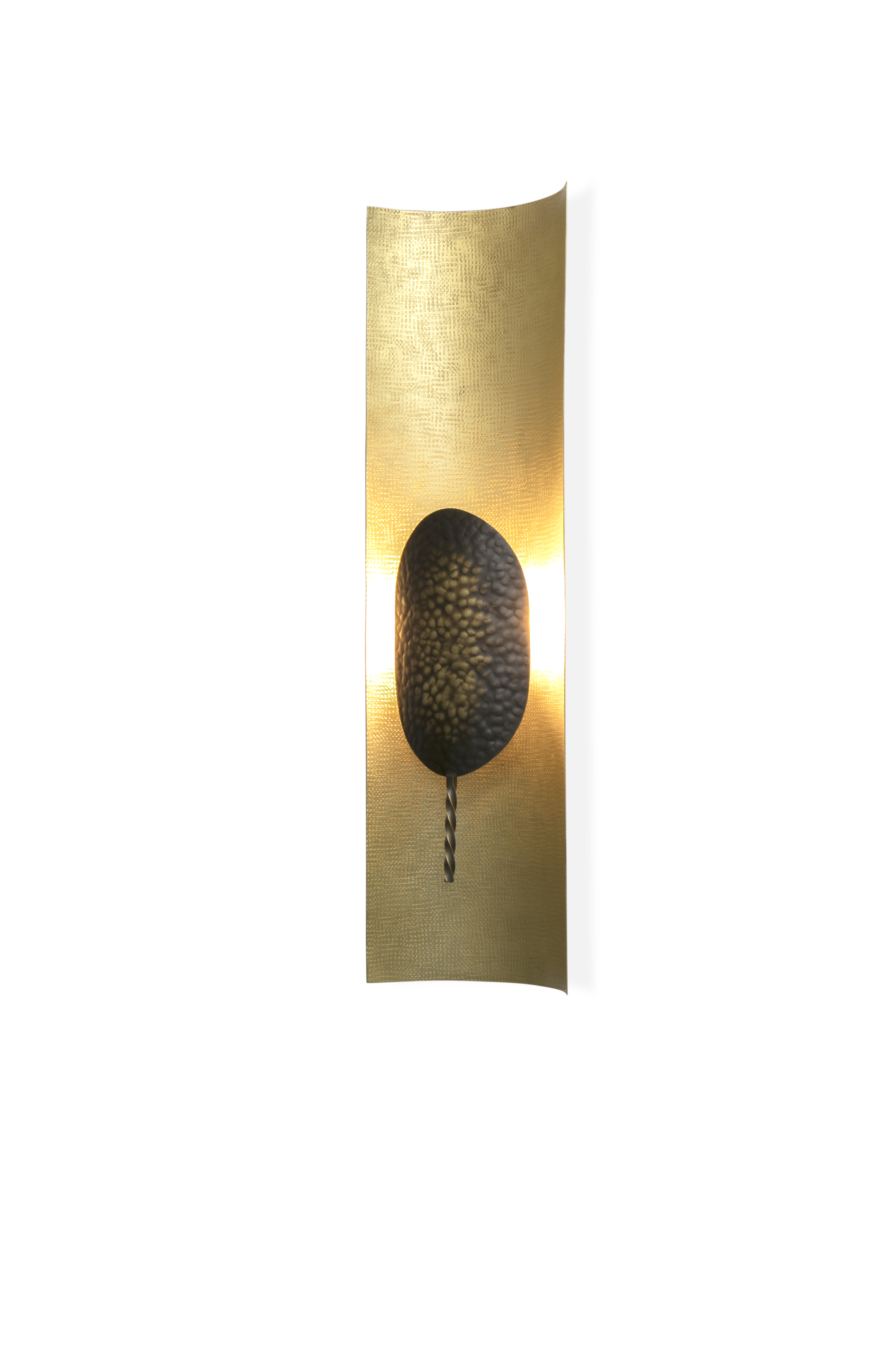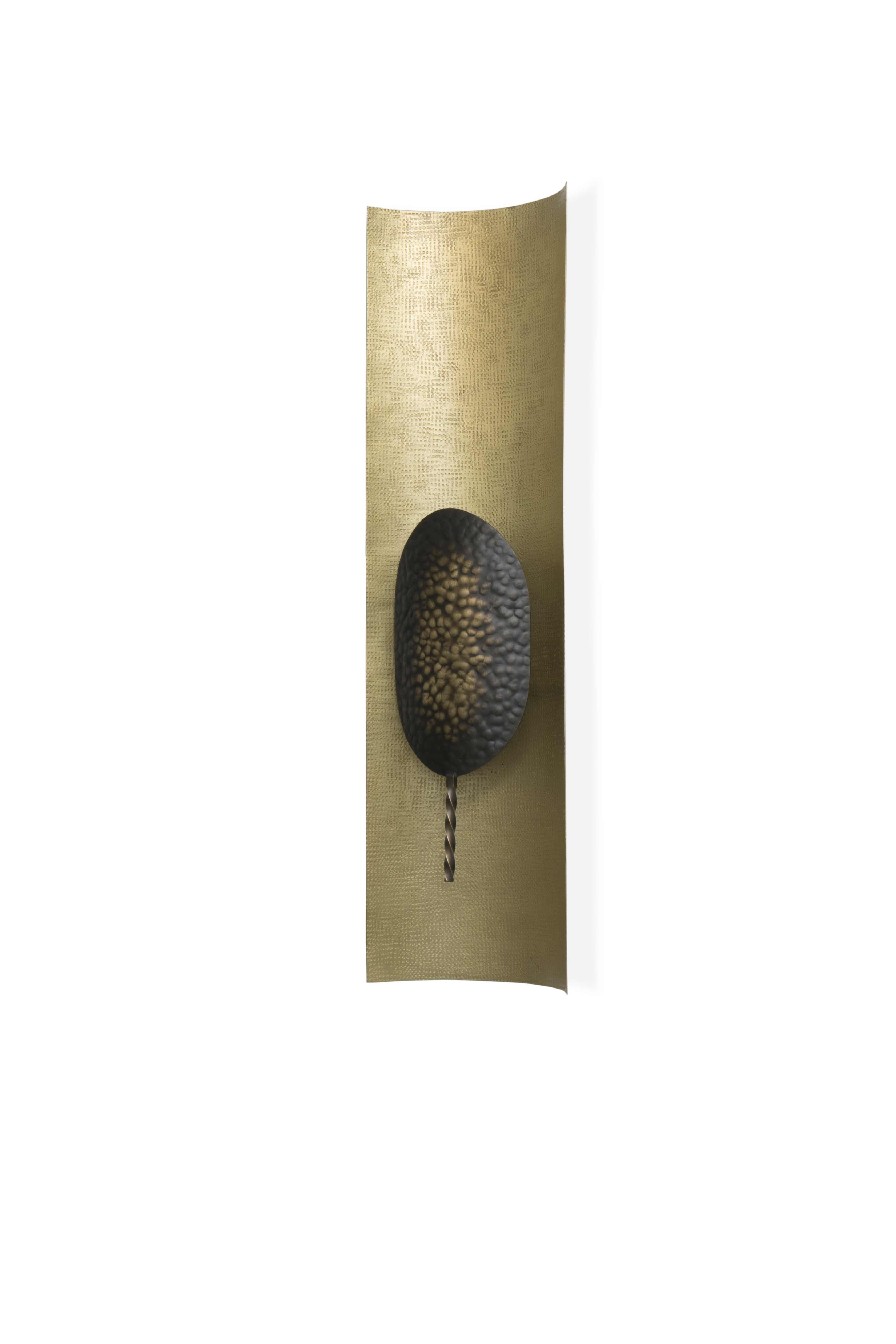 Used since ancient times in rituals and festivities, masks are mysterious and unpredictable. Just like PANJI Wall Light, a contemporary lighting product made of finished hammered brass with matte varnish. Let the mysticism of this contemporary brass wall sconce influence your modern interior design.