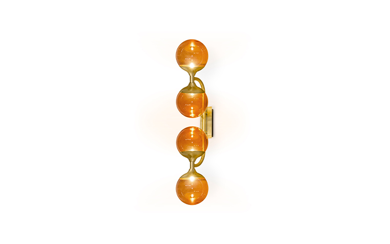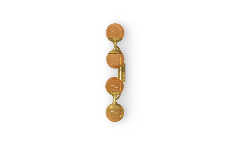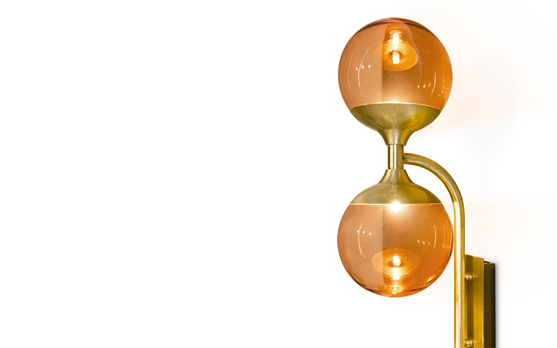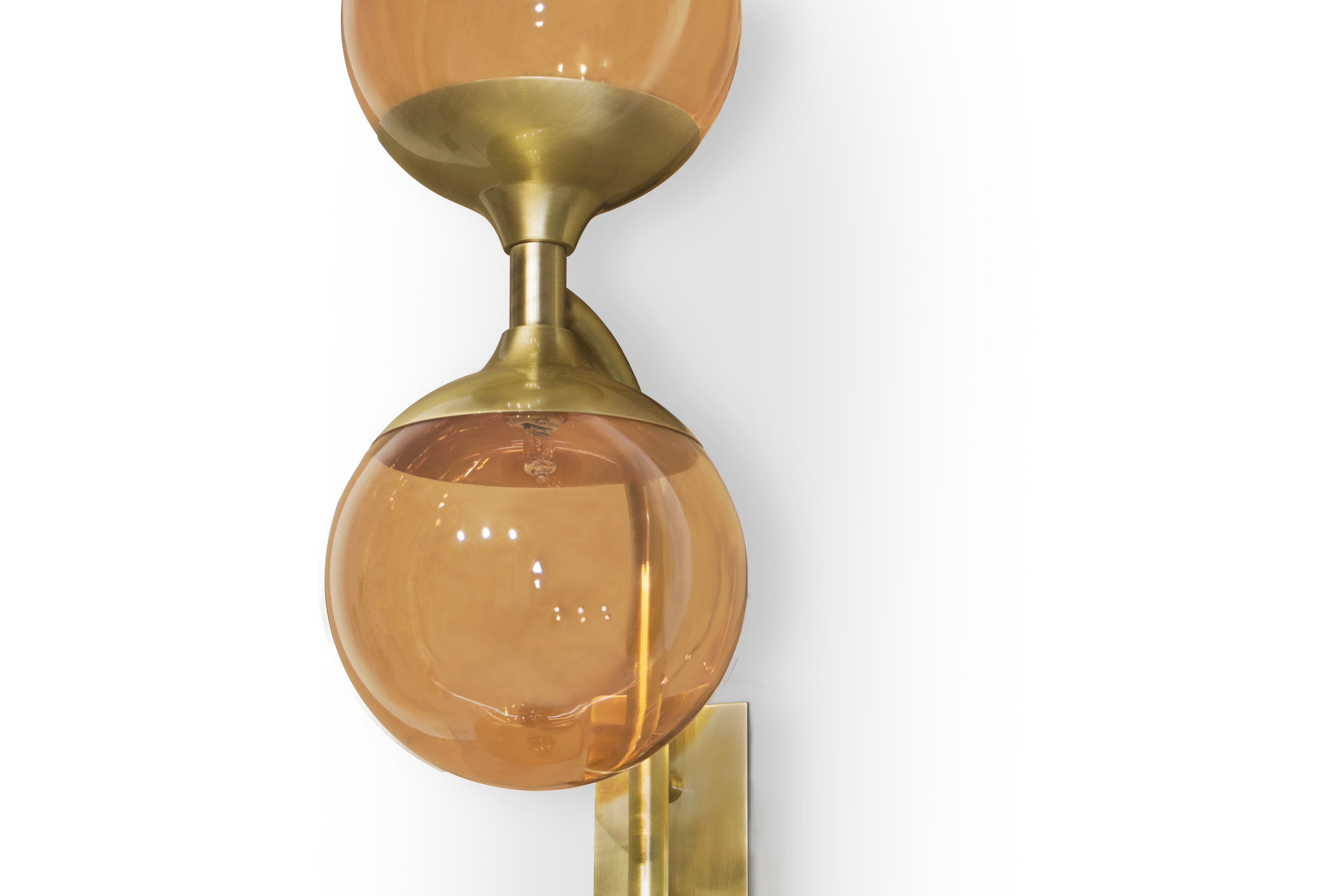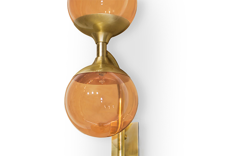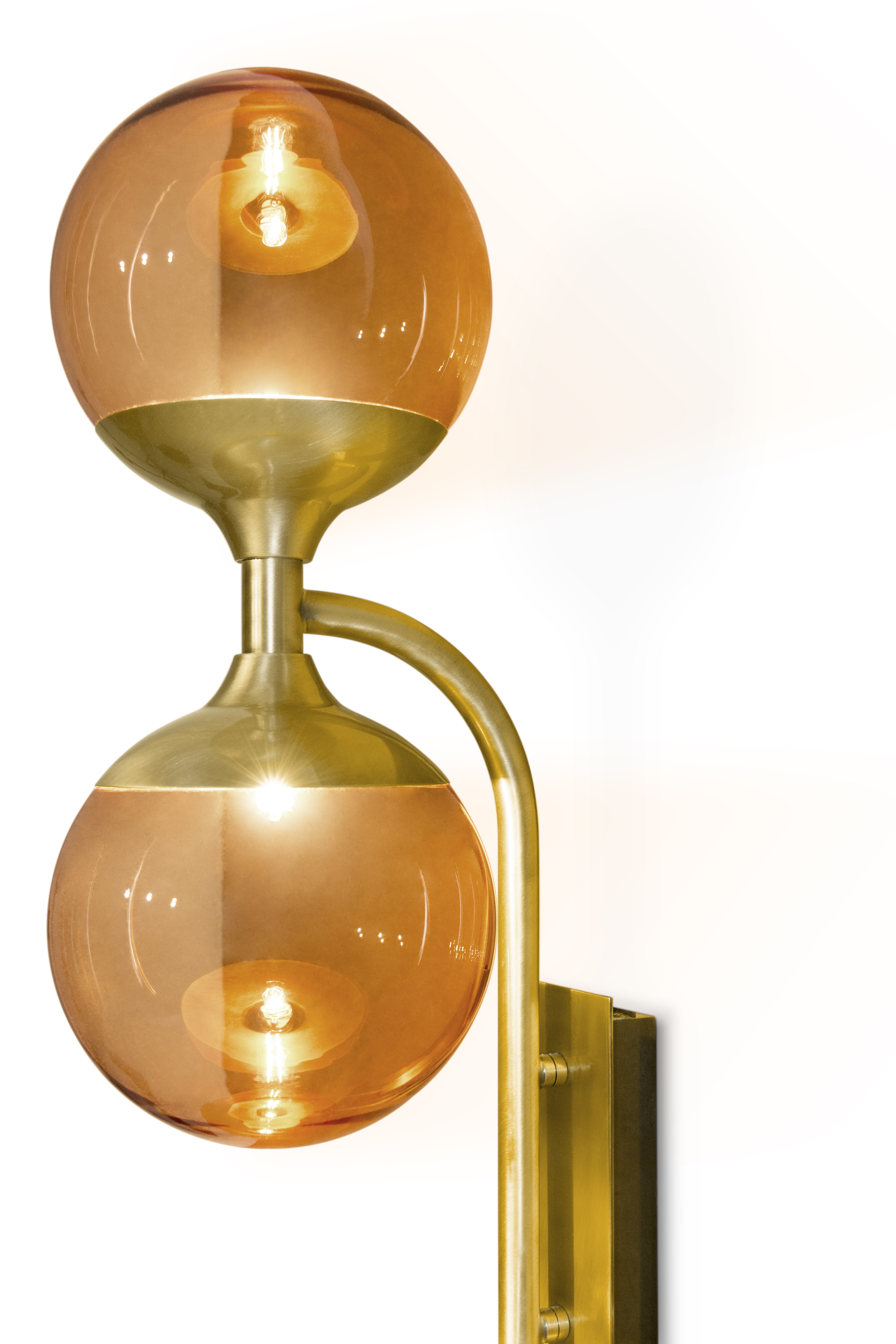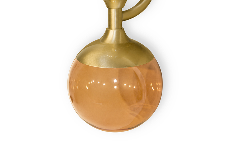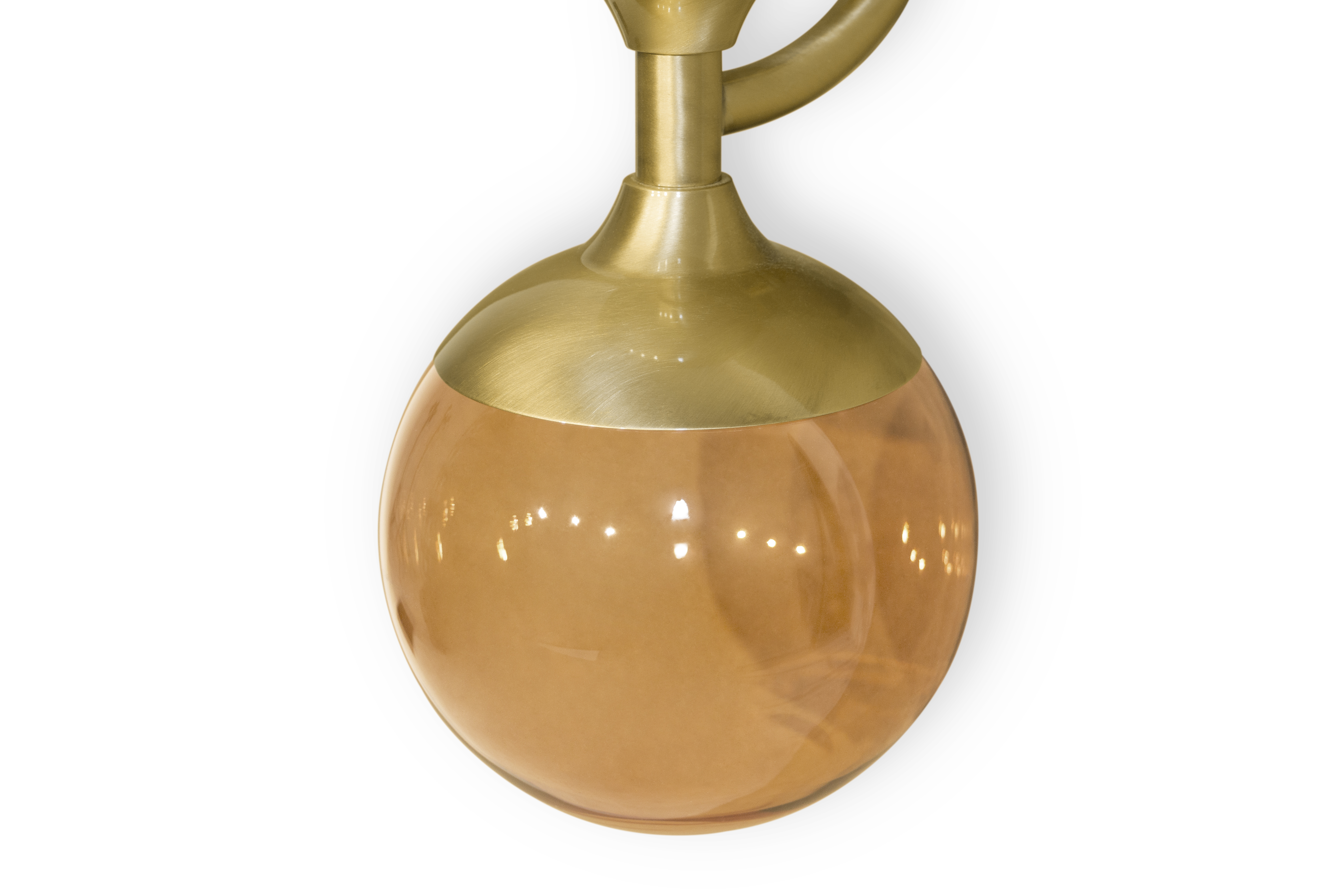 Aged brushed brass with glossy varnish and shaders in bronze glass