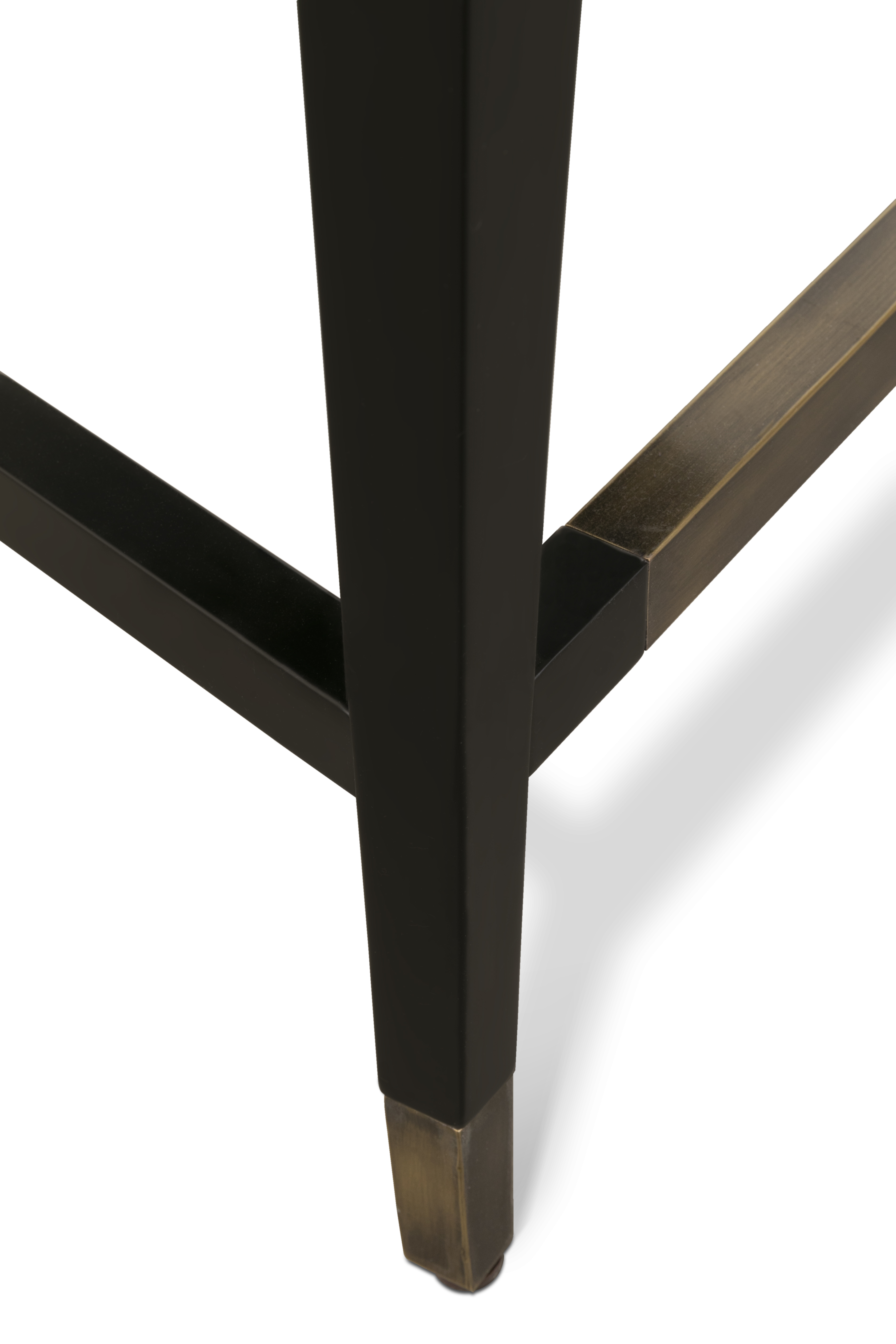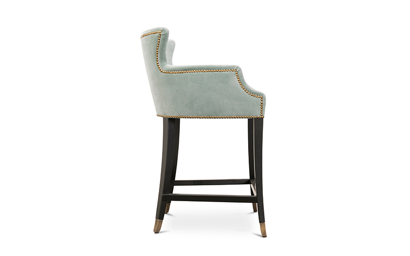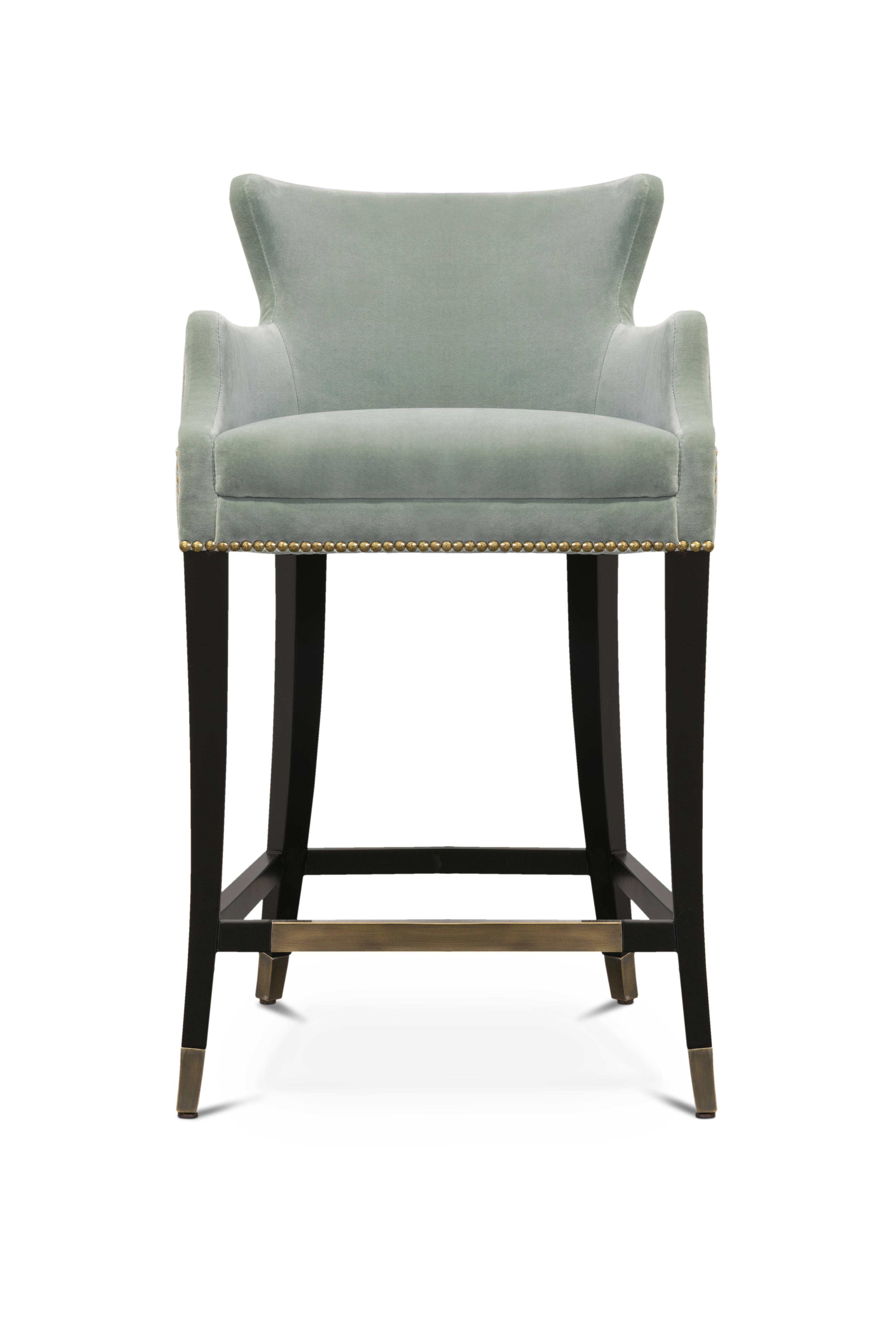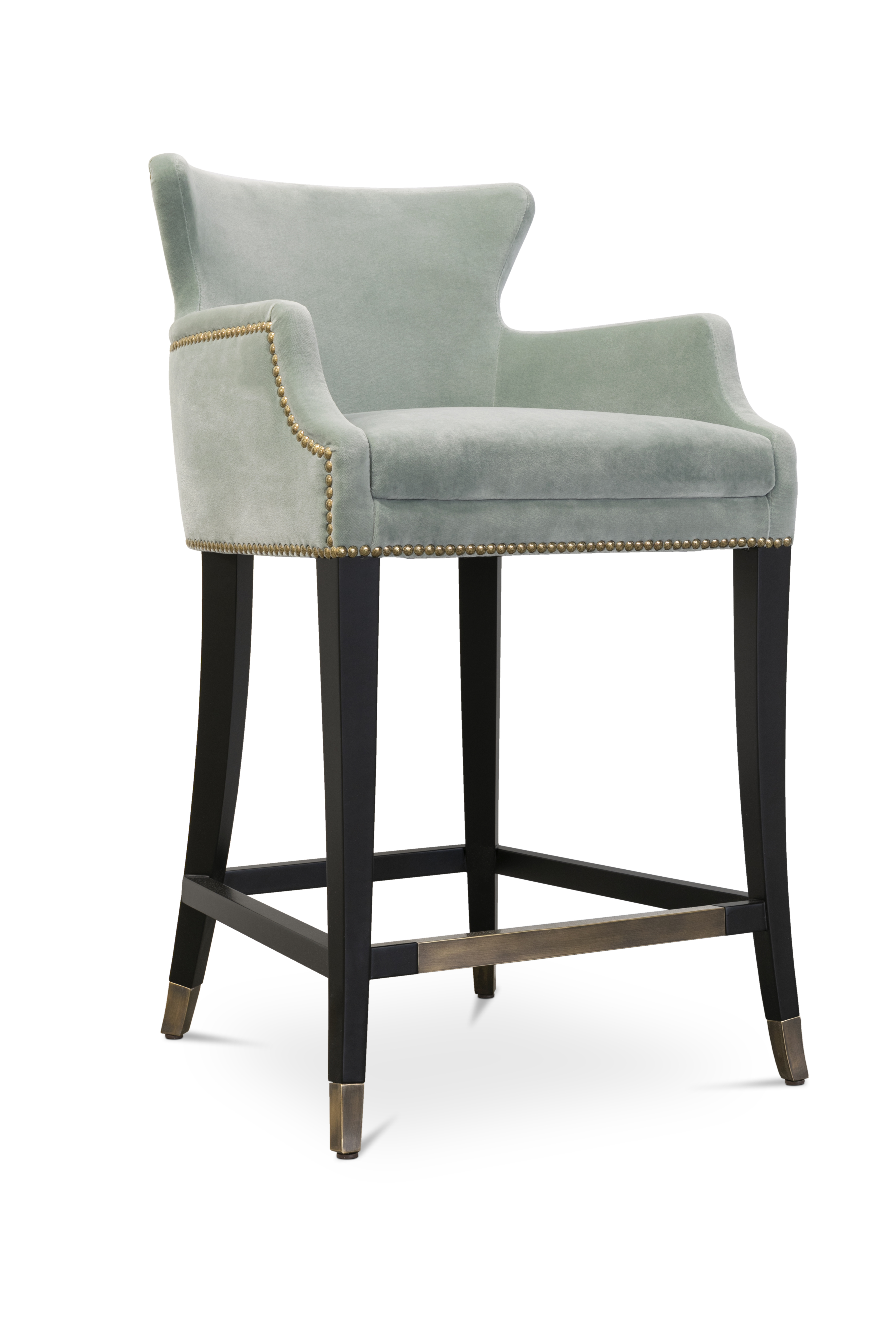 As one of Indonesia’s most active volcanoes, Dukono embodies an unpredictable strength. Just like DUKONO Counter Stool, upholstered in velvet, with legs in black lacquer matte and brushed aged brass details. Place it in modern home decor and watch this velvet counter stool fill the room with its strong attitude.