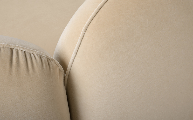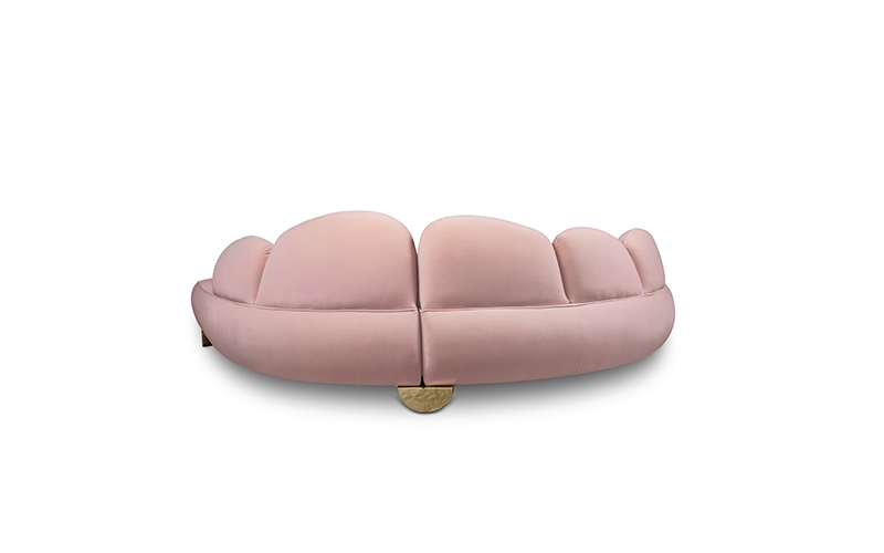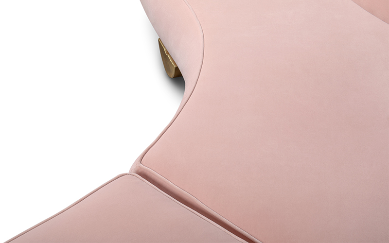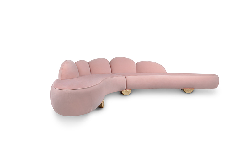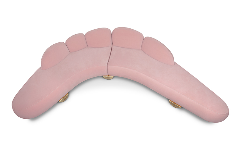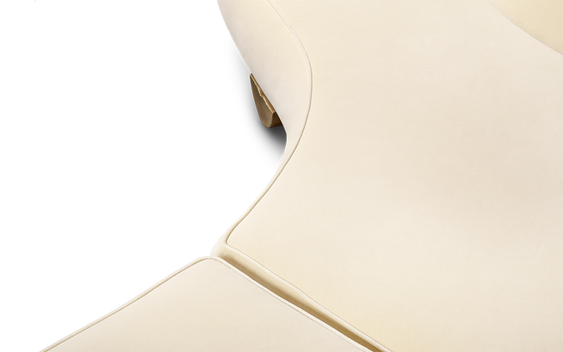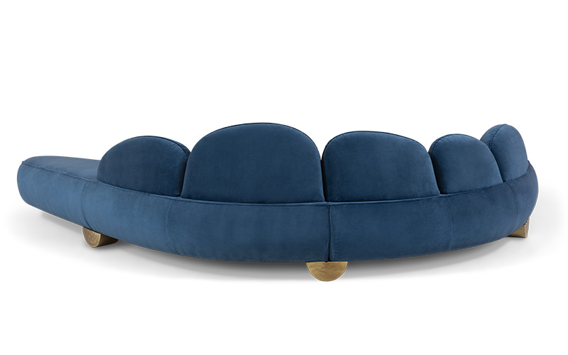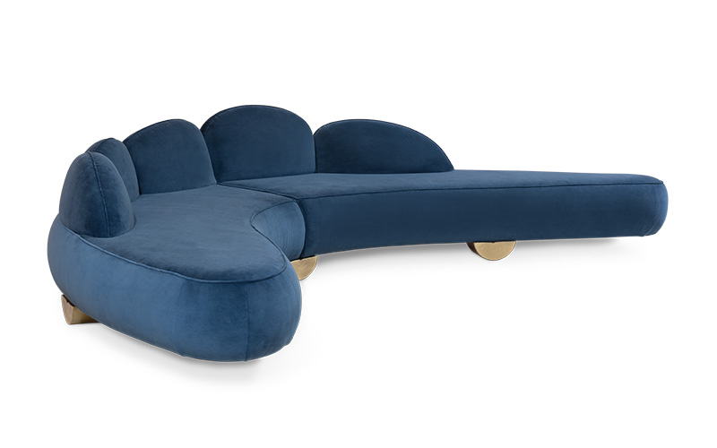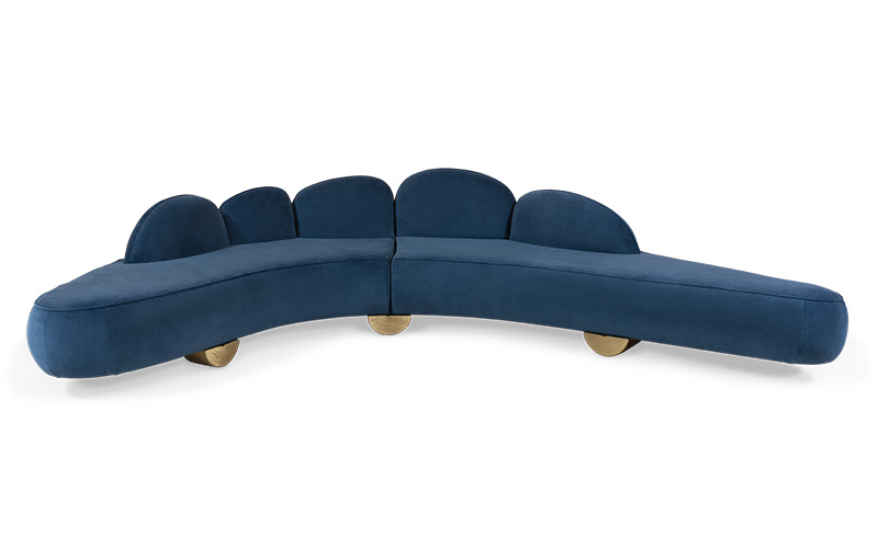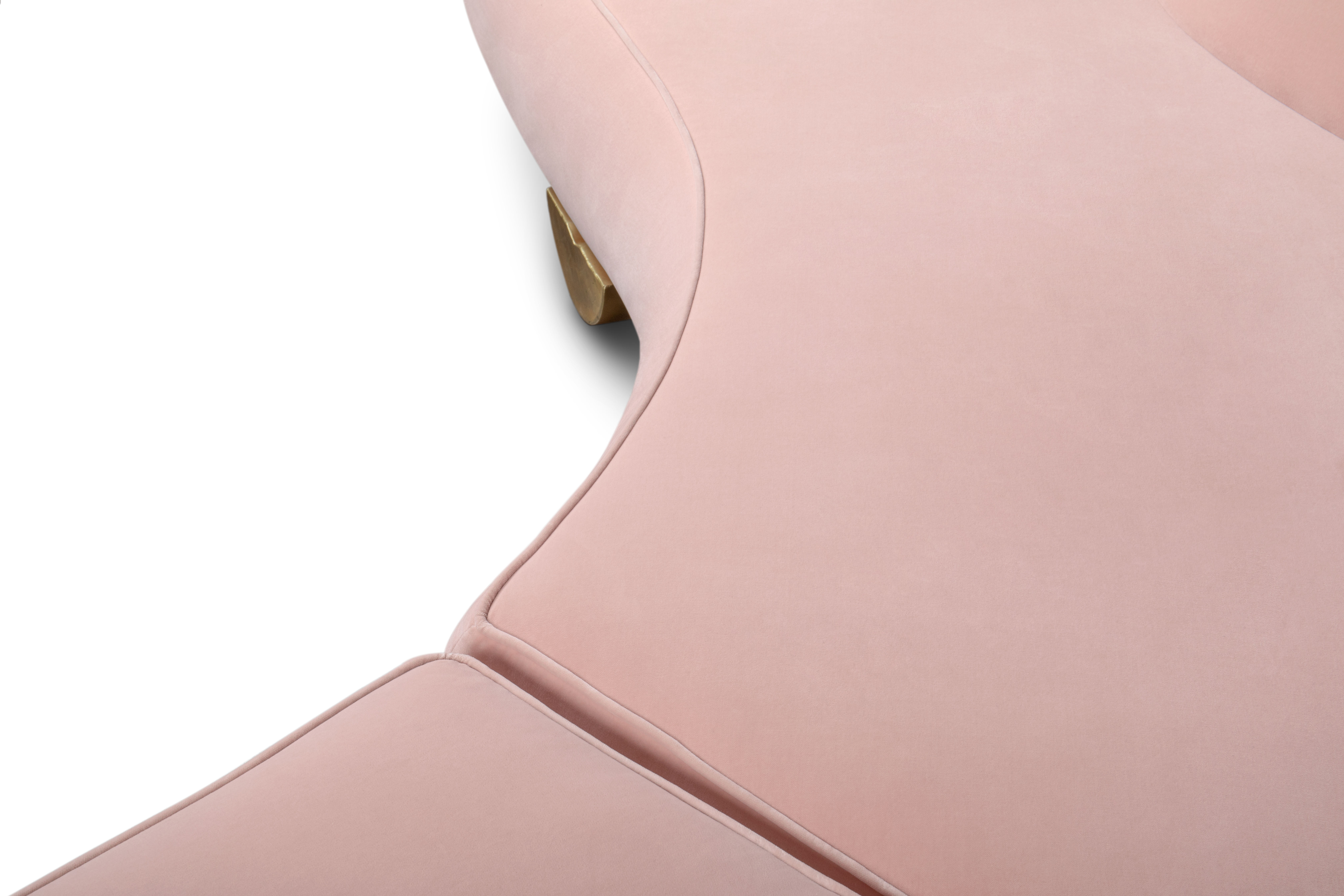 FITZROY Sofa is inspired in Mount Fitz Roy, a mountain in Patagonia, whose name is a tribute to Robert FitzRoy, the captain of the ship that transported Charles Darwin in his travel around the world. This curved sofa, with its back inspired in the outstanding mountain shape, is fully upholstered in cotton velvet and the base is in matte casted brass. FITZROY Modern Corner Sofa will add an organic element to any living room set.