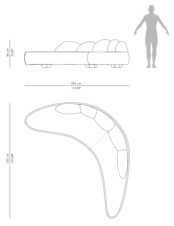 W 335 cm | 131.9" D 285 cm | 112.2" H 86 cm | 33.9"