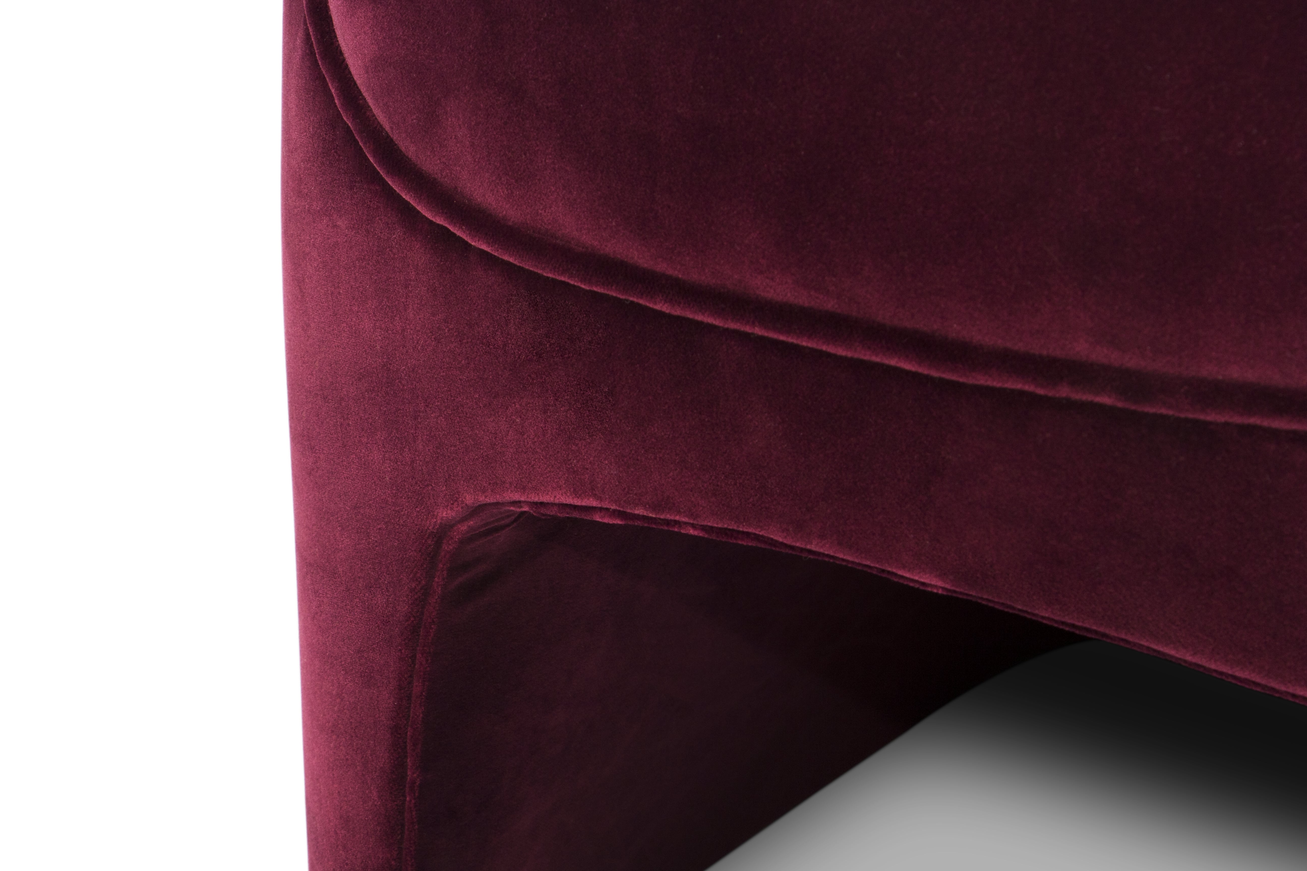 The Temple of Hera is one of the most magnificent examples of iconic Greek architecture. Fully upholstered in cotton velvet, HERA Red Modern Armchair embodies this magnificence. This channel-tufted chair is an exquisite example of chair design and will instantly transform a modern living room set.