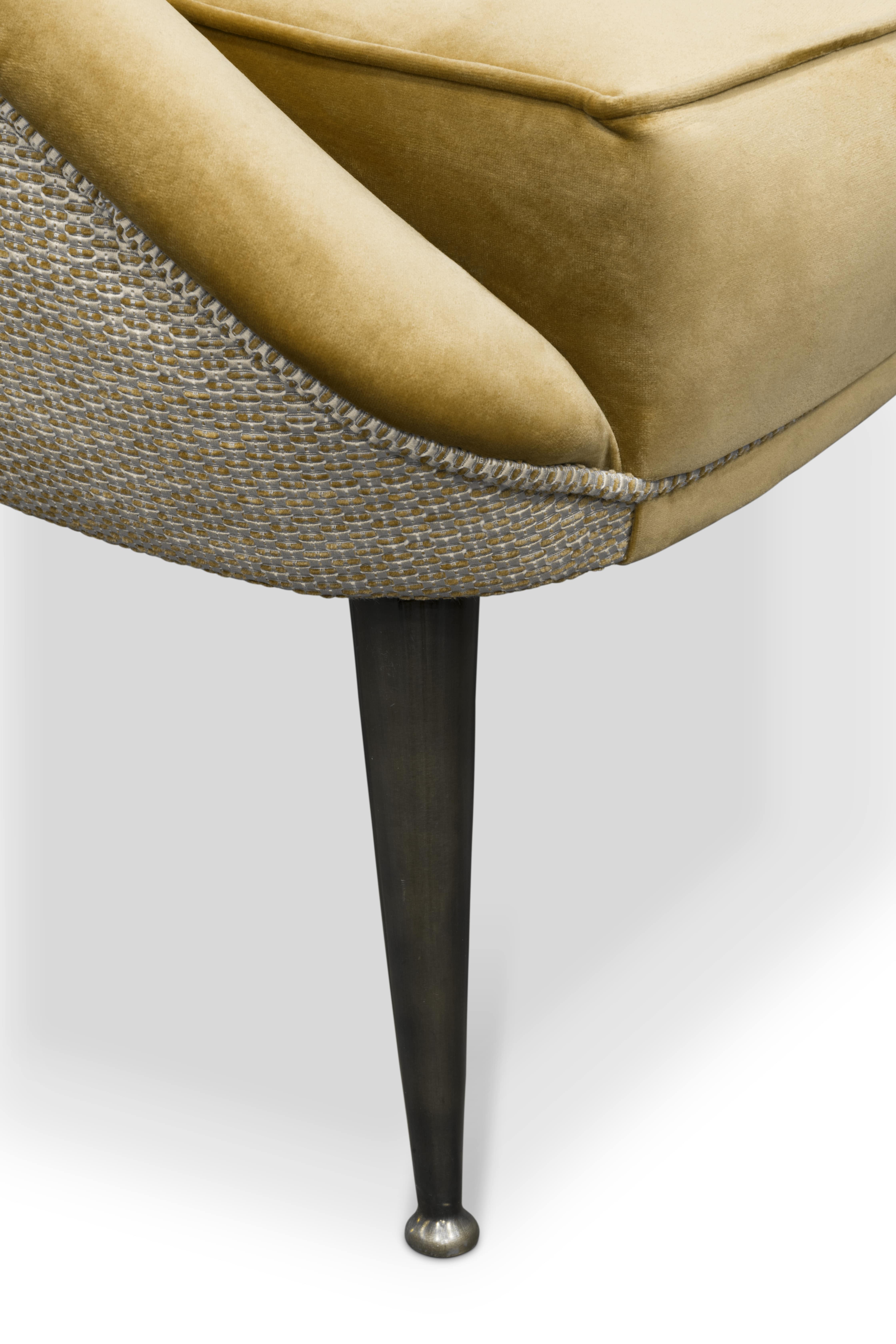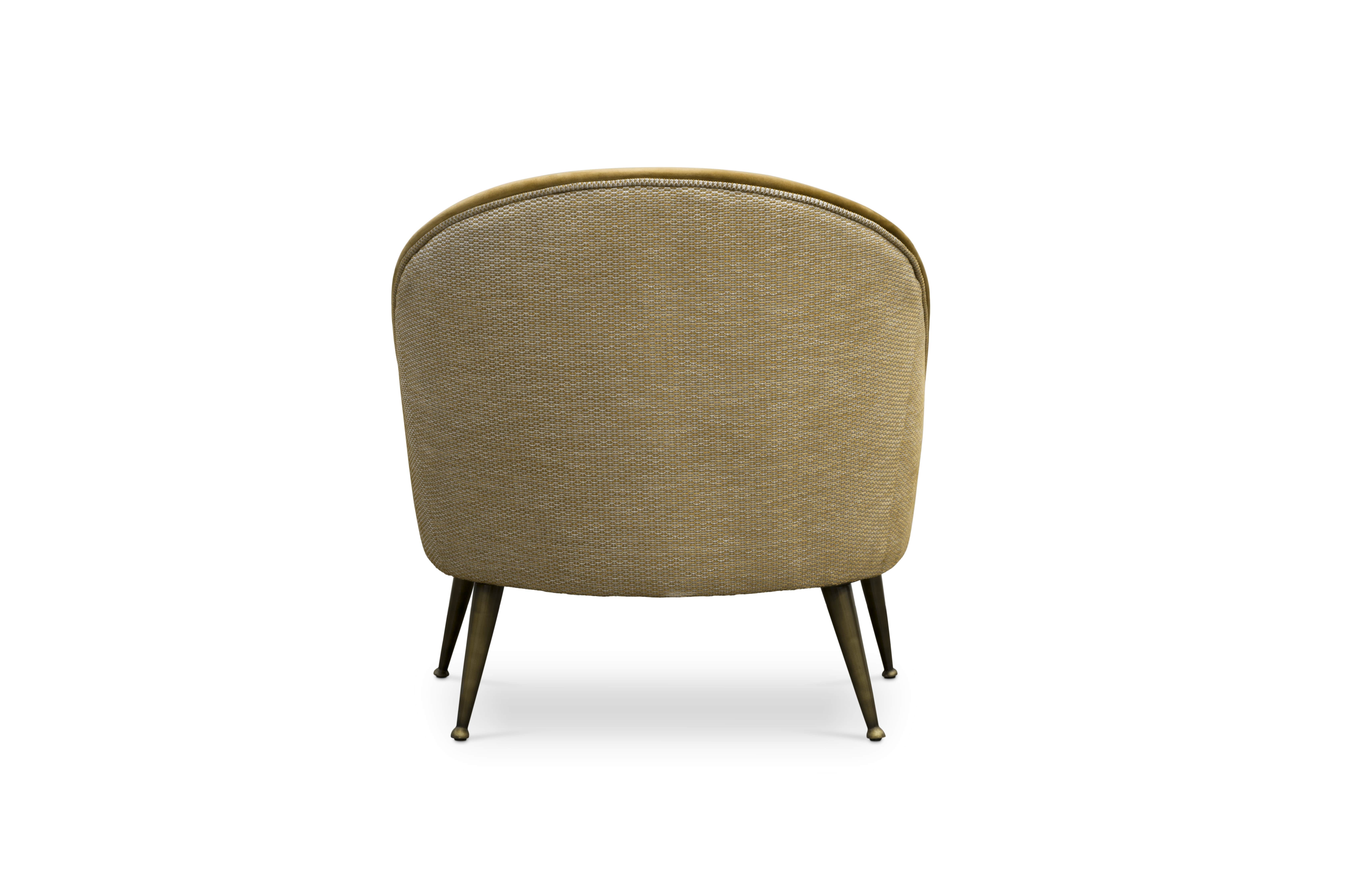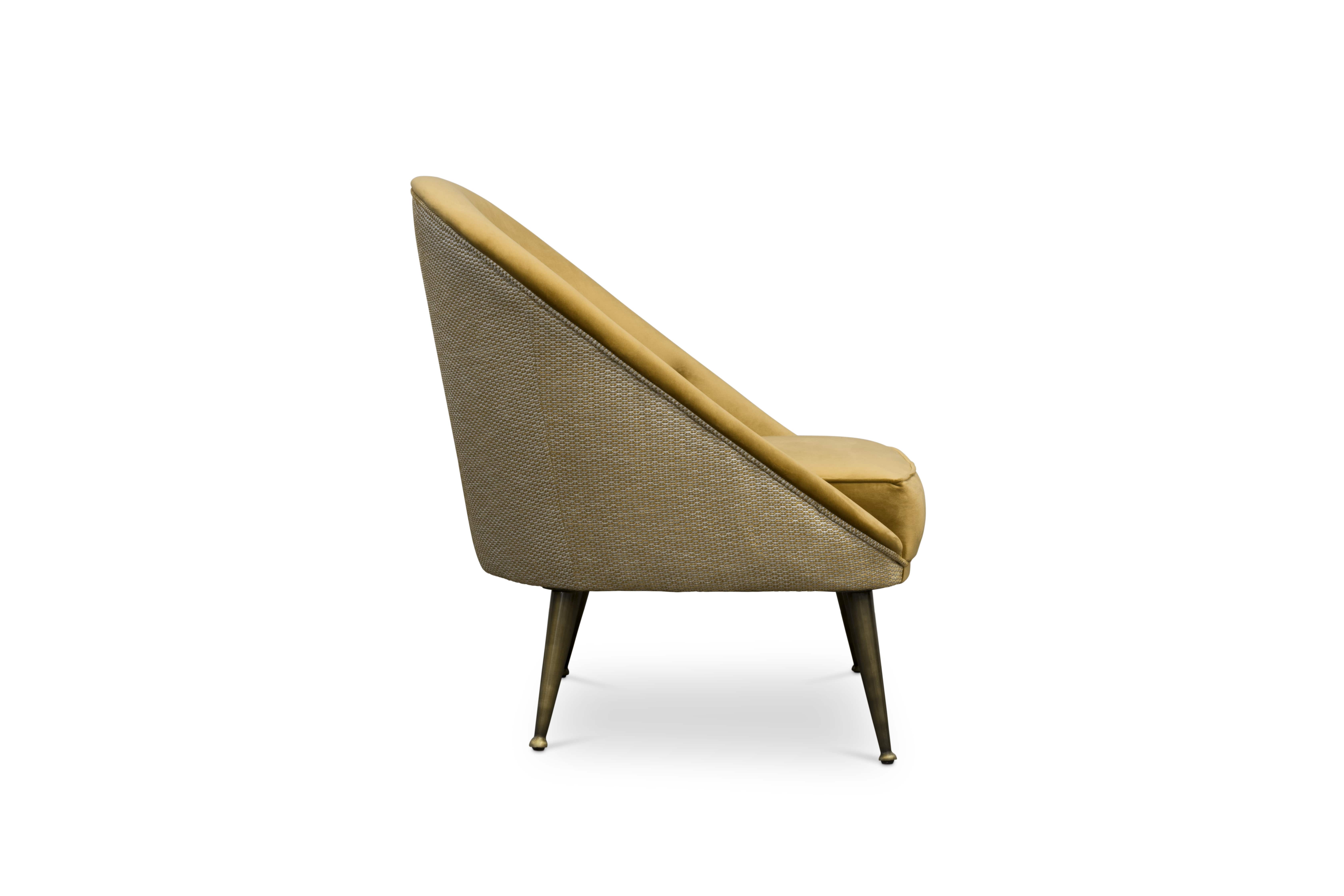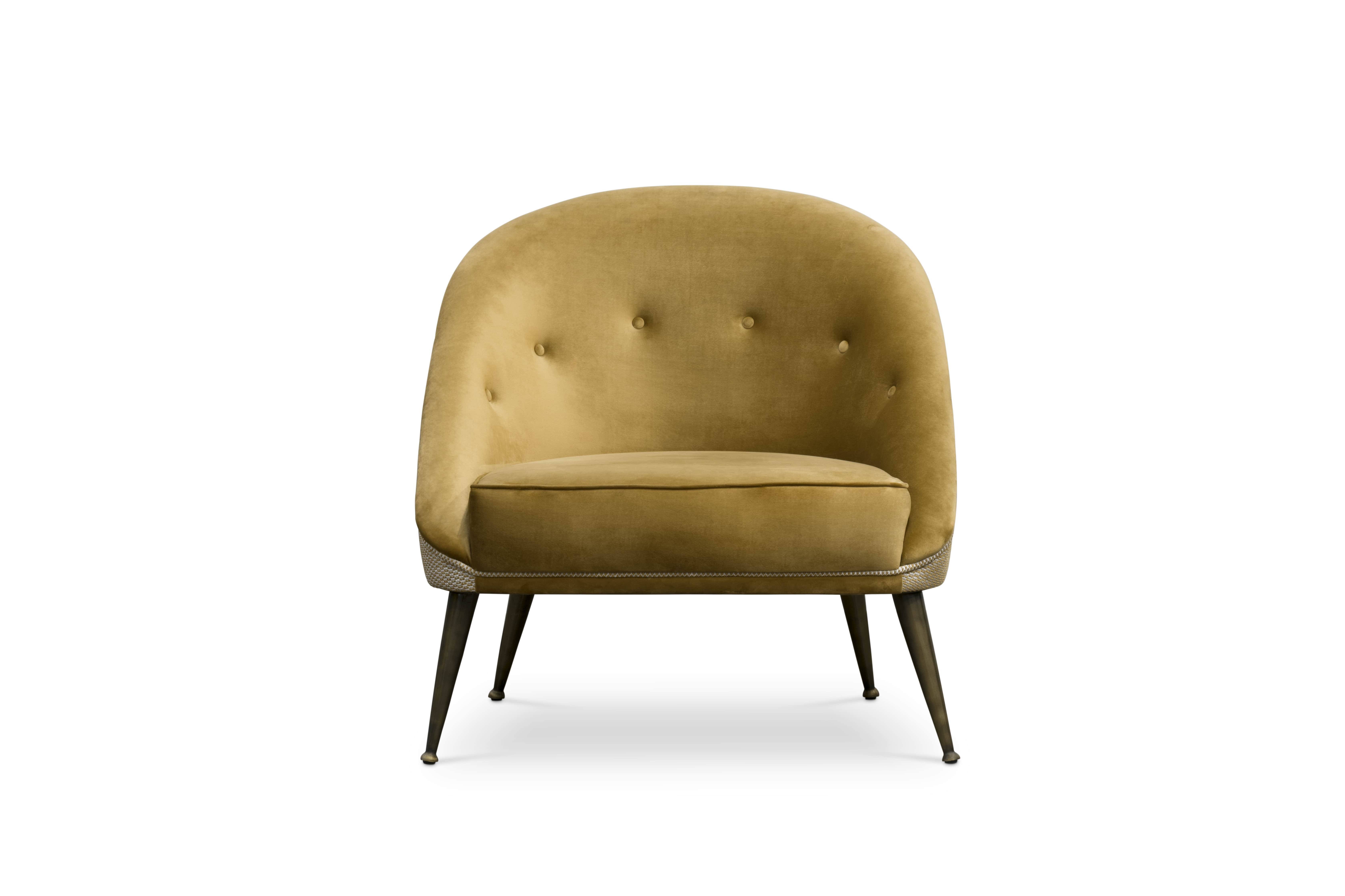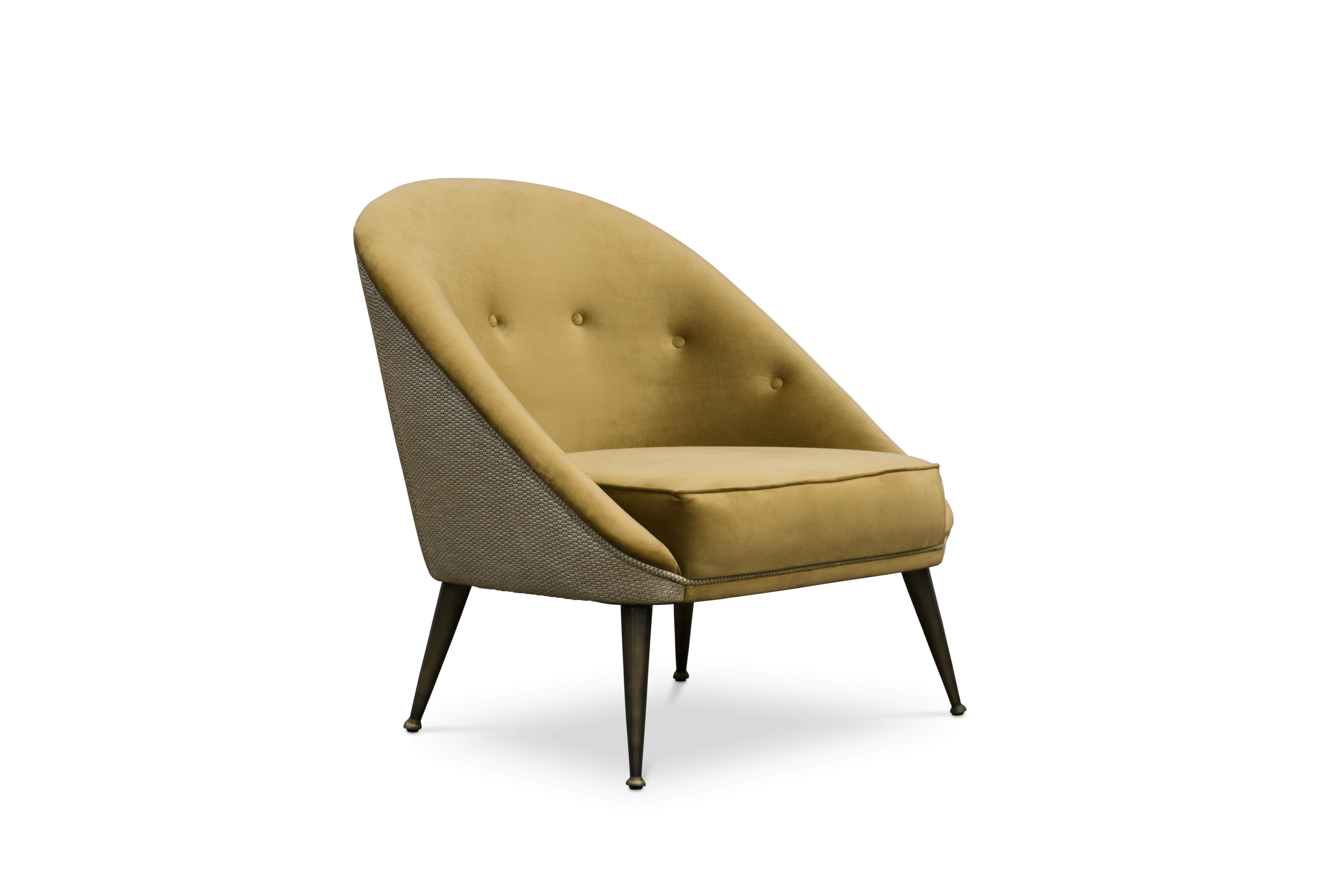 The ethnicities of the mesmerising Malay Archipelago inspired the creation of the MALAY Velvet Armchair, a twist on mid-century modern furniture. This modern mid-century tufted velvet armchair with aged brass legs has a mystical soul that will fulfil your living room set with energy from Nature.
