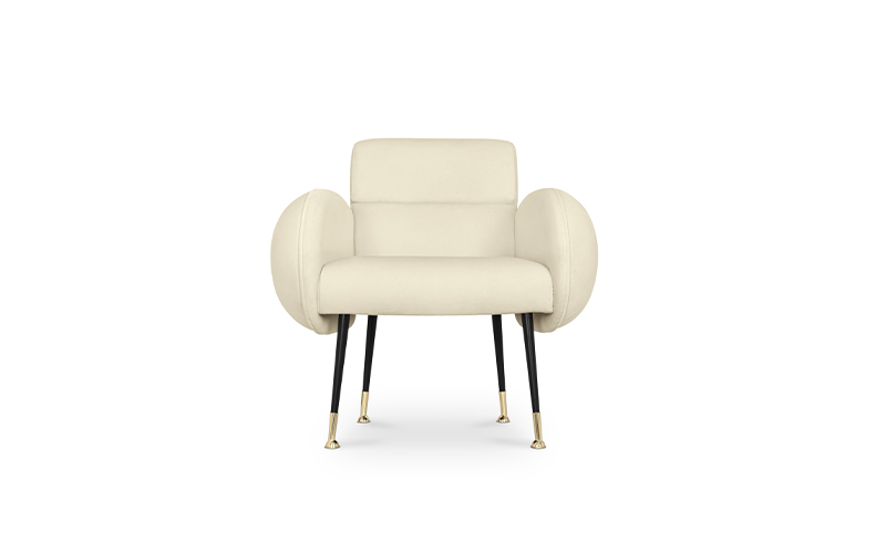 A dining chair part of the Marco collection, this mid-century piece is the ultimate chair for a luxurious dining room ready for a feast. Marco dining chair features polished brass and glossy black feet along with round shaped arms that provide even more comfort.