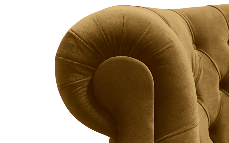 The Scottish Loch Maree is surrounded by a picturesque mountain with a rugged landscape. MAREE II Sofa portrays that rough landscape softened by the tufted velvet. The MAREE II is a fully upholstered velvet sofa, making it the perfect addition to a modern living room setting. The MAREE Velvet Sofa is designed to give a modern flair to the classic chesterfield sofa.
