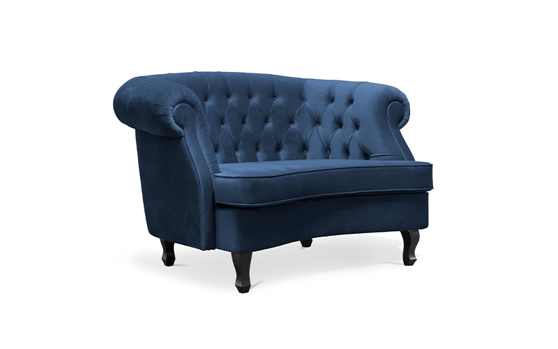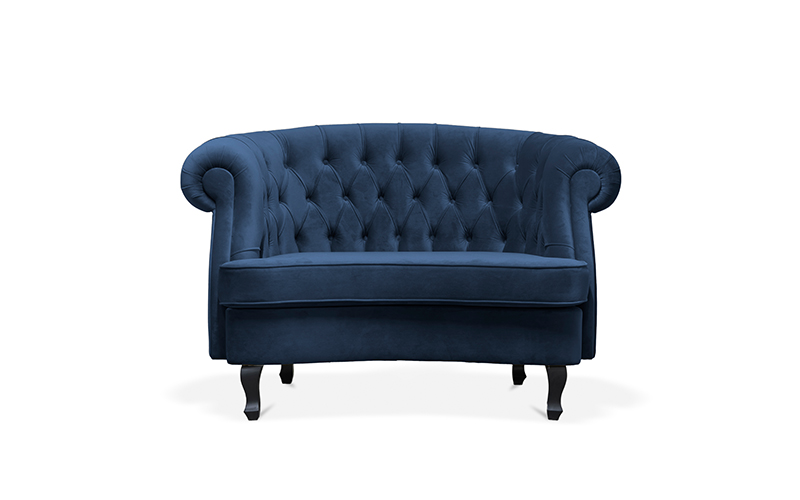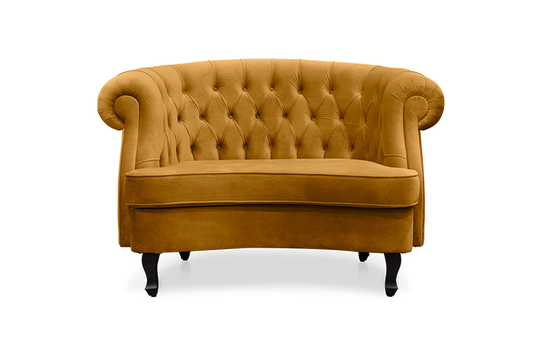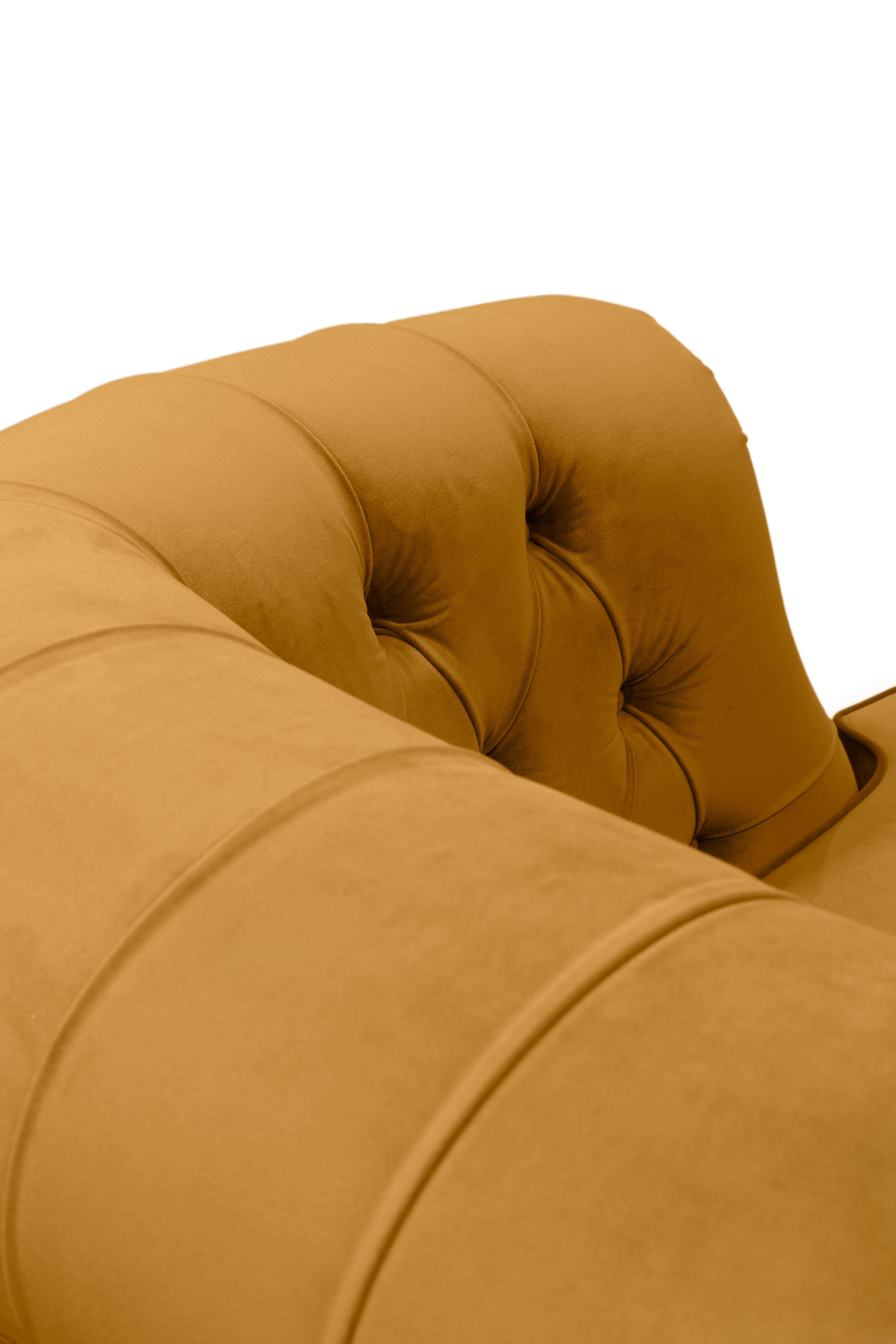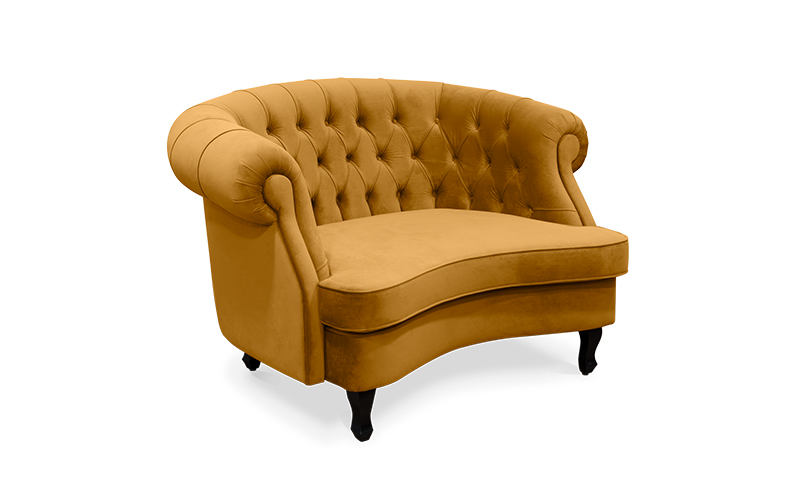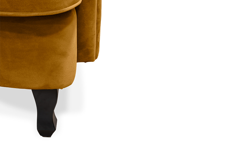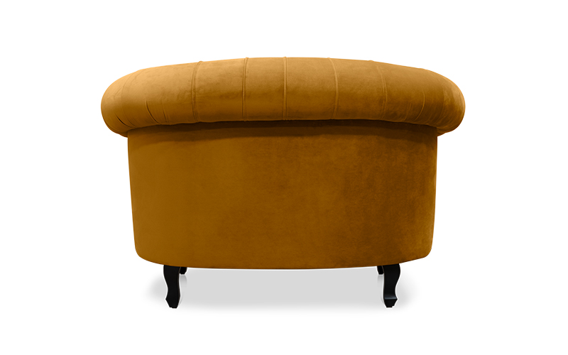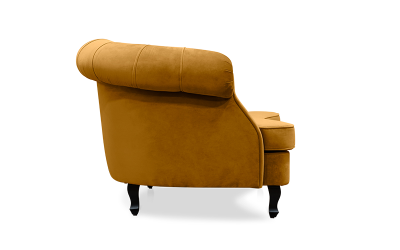 The Scottish Loch Maree is surrounded by a picturesque mountain with a rugged landscape. MAREE Single Sofa portrays that rough landscape softened by the tufted velvet upholstery. This impressive living room single sofa chair gives a modern flair to the classic chesterfield sofa, upholstered in velvet and legs in black matte lacquer.