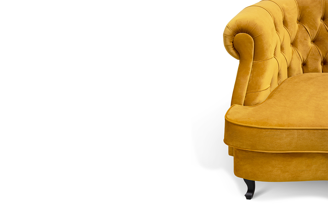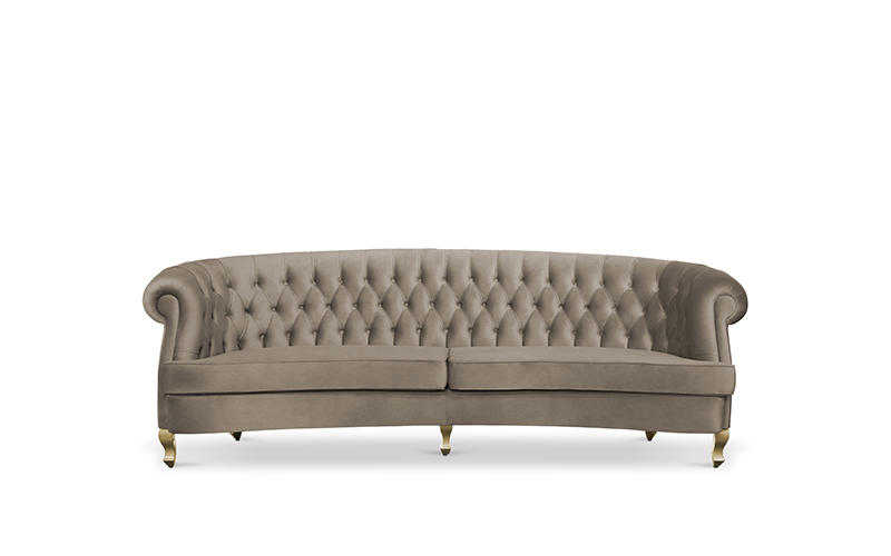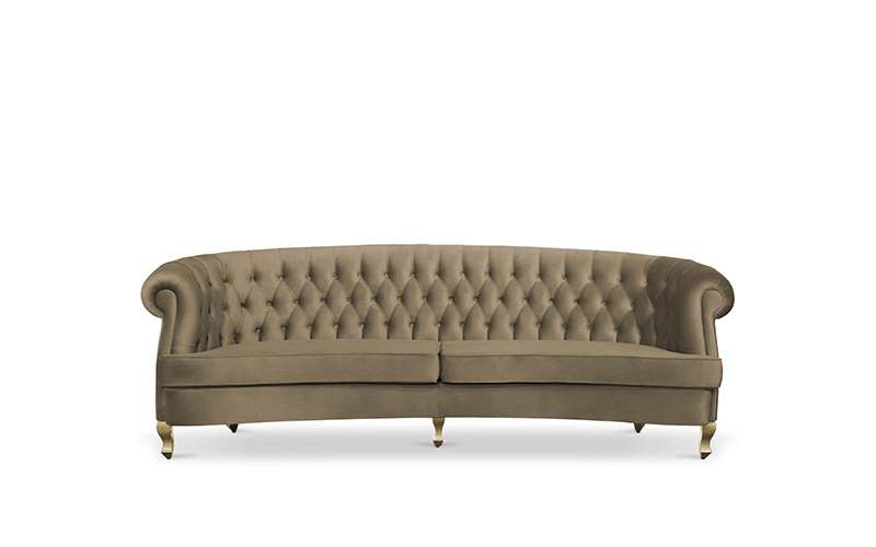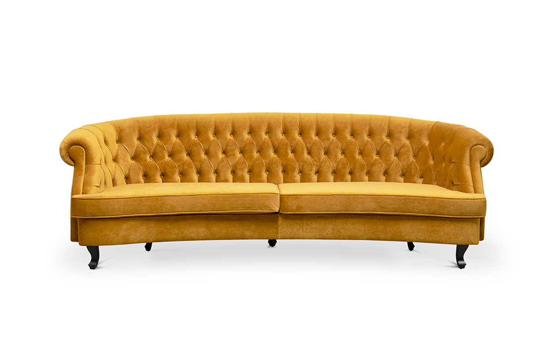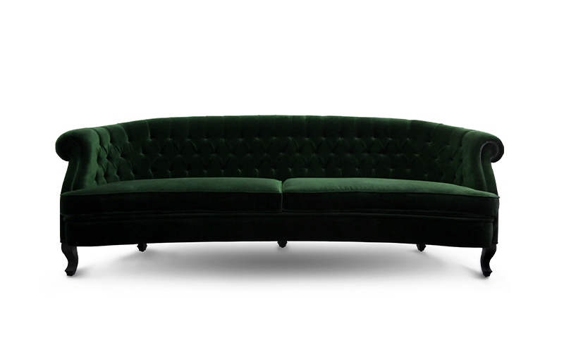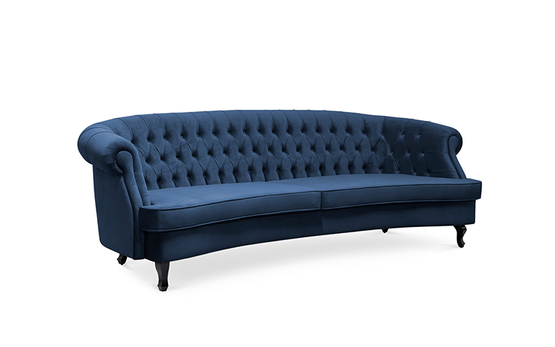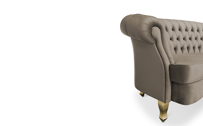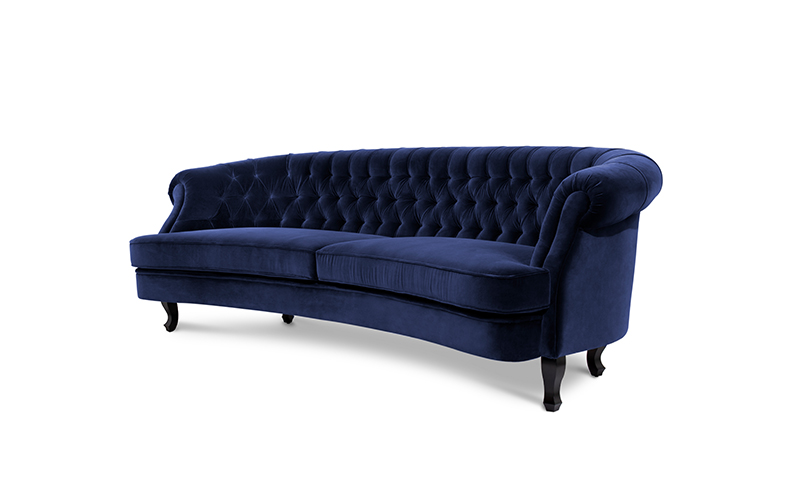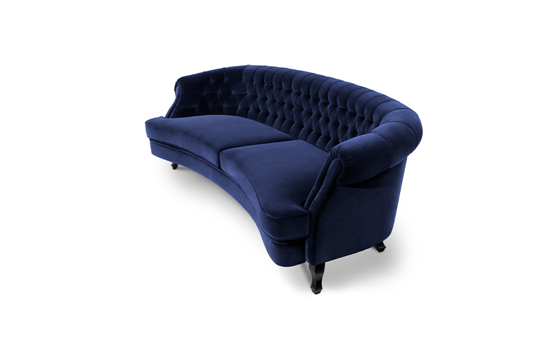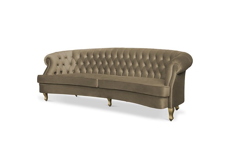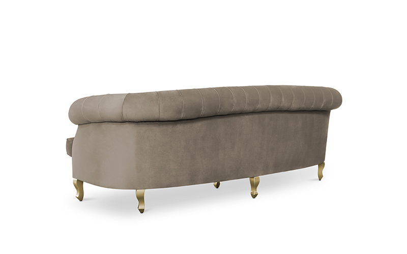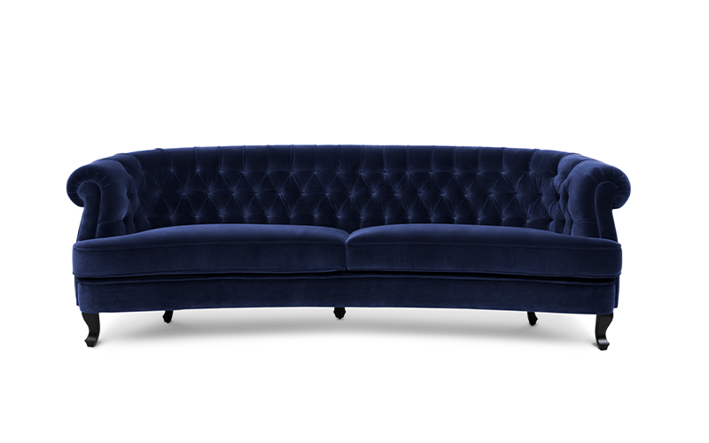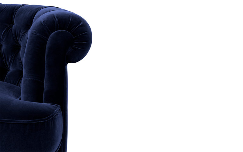 The Scottish Loch Maree is surrounded by a picturesque mountain with a rugged landscape. MAREE Sofa portrays that rough landscape softened by the tufted cotton velvet. This impressive modern living room sofa upholstered in velvet has legs in matte lacquer, giving a modern flair to the classic chesterfield sofa.