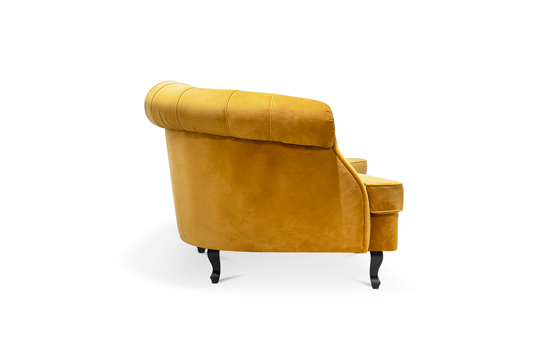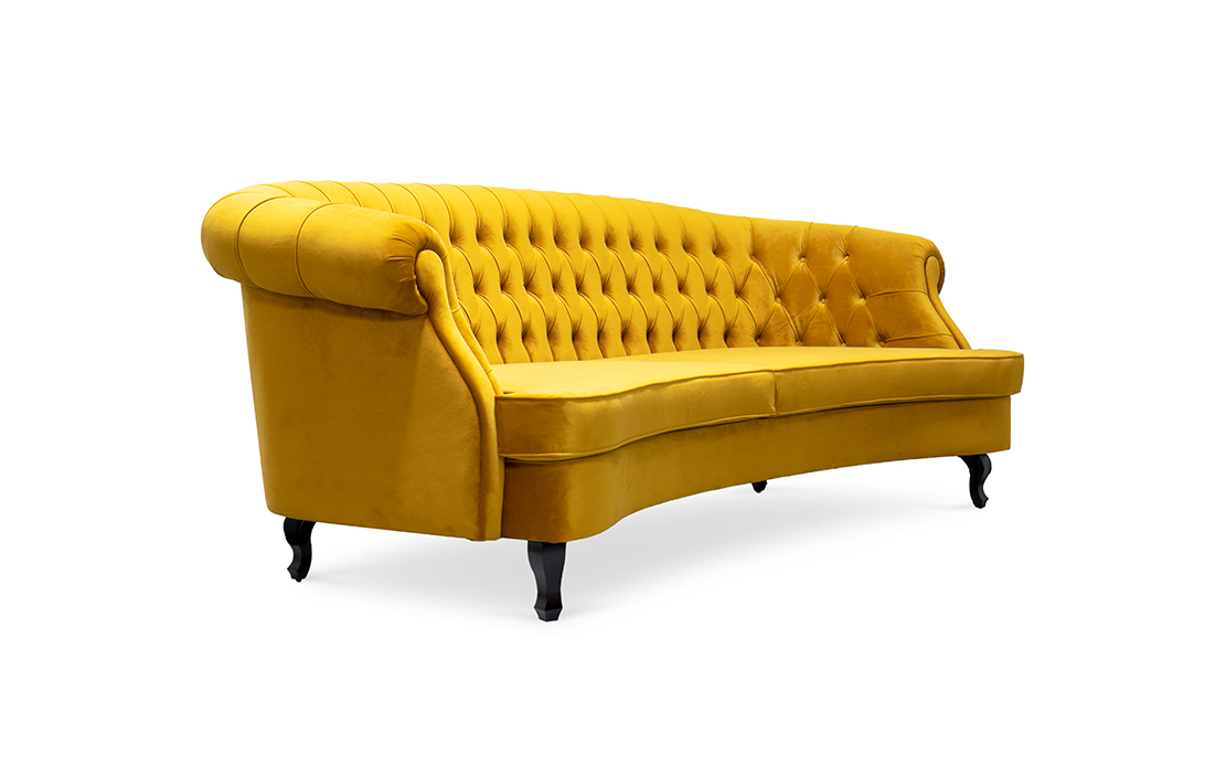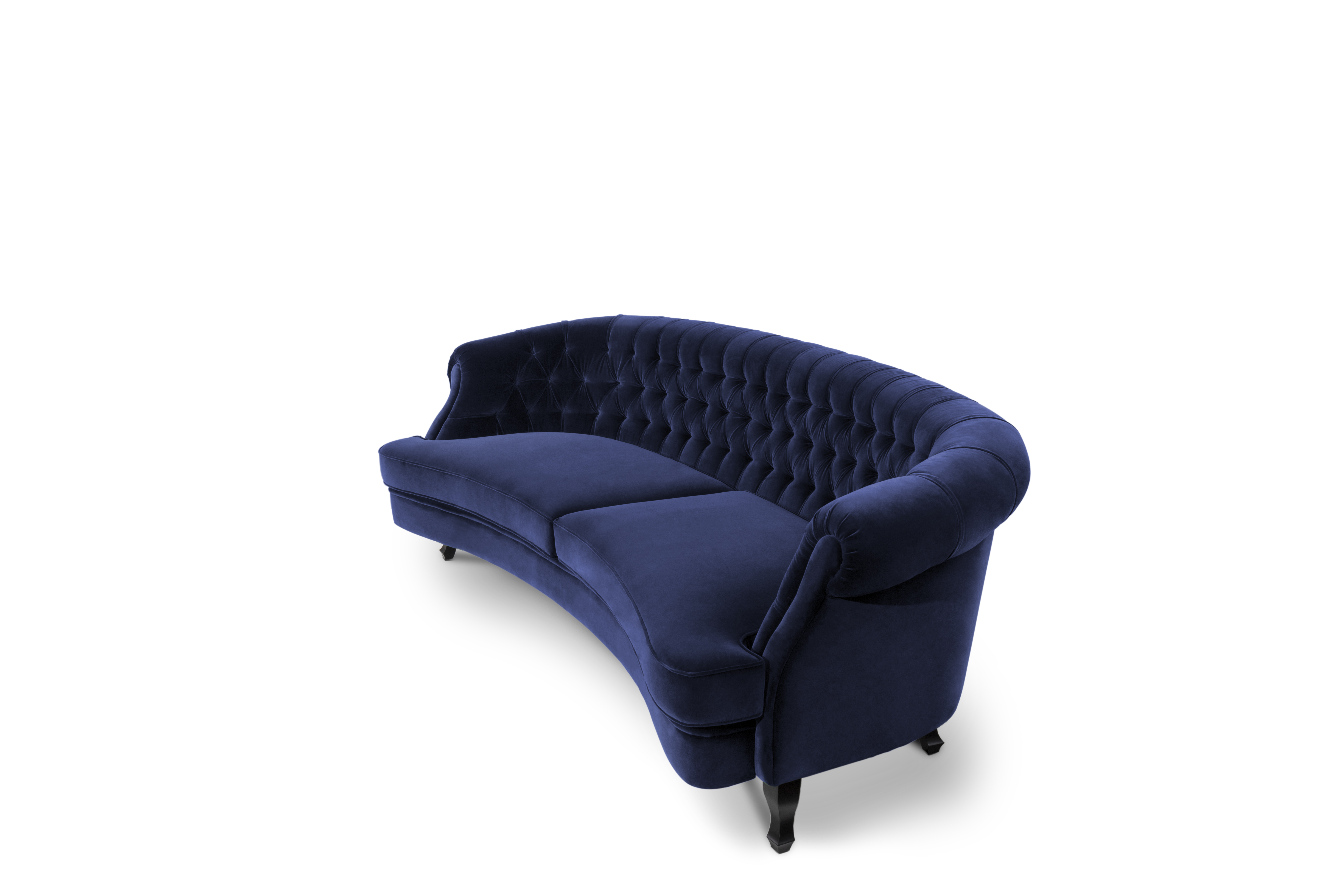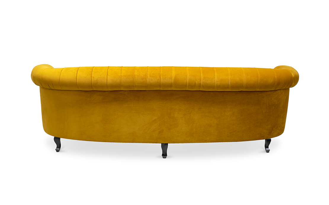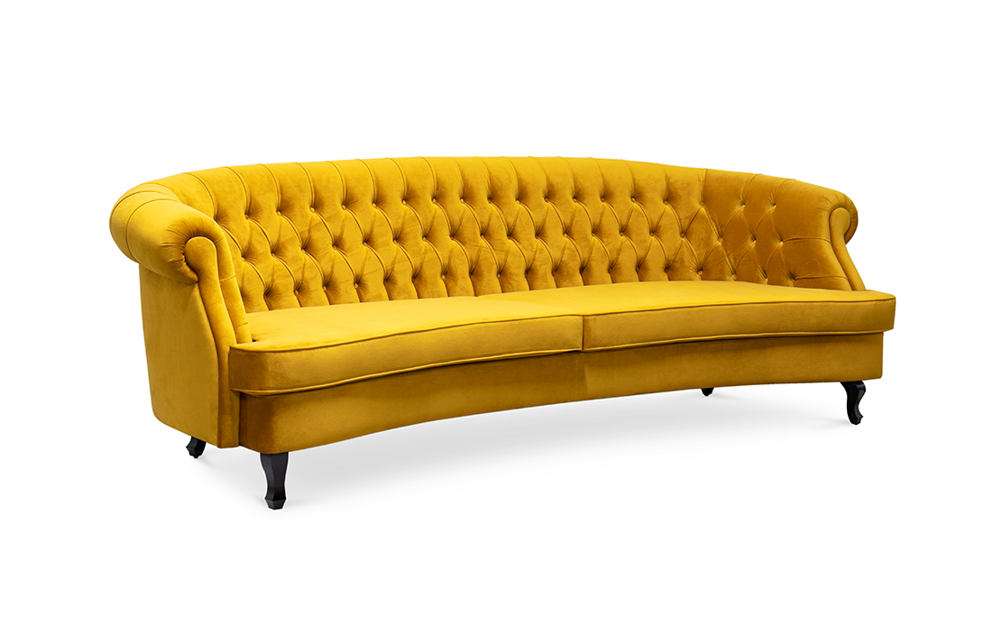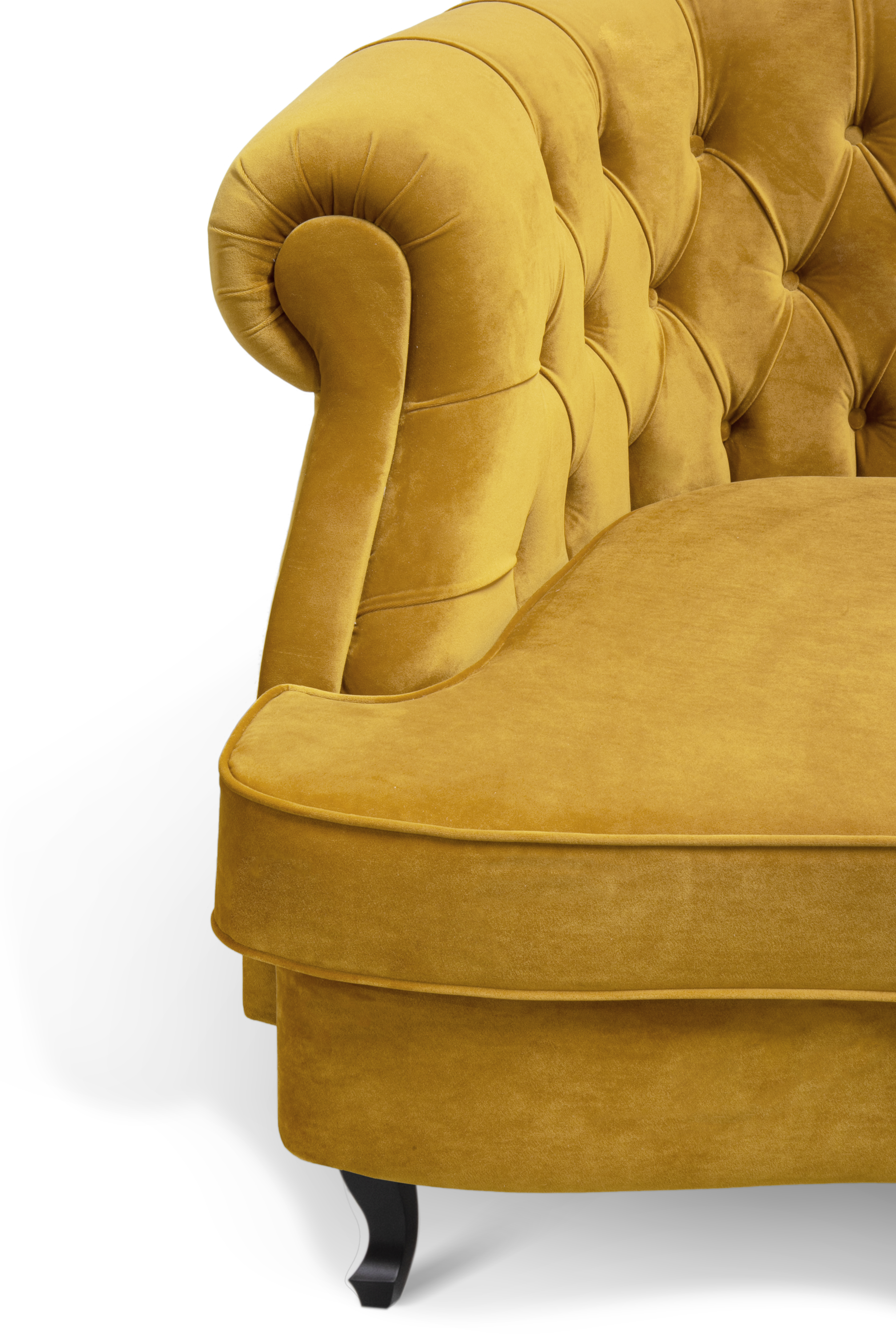 The Scottish Loch Maree is surrounded by a picturesque mountain with a rugged landscape. MAREE Sofa portrays that rough landscape softened by the tufted cotton velvet. This impressive modern living room sofa upholstered in velvet has legs in matte lacquer, giving a modern flair to the classic chesterfield sofa.