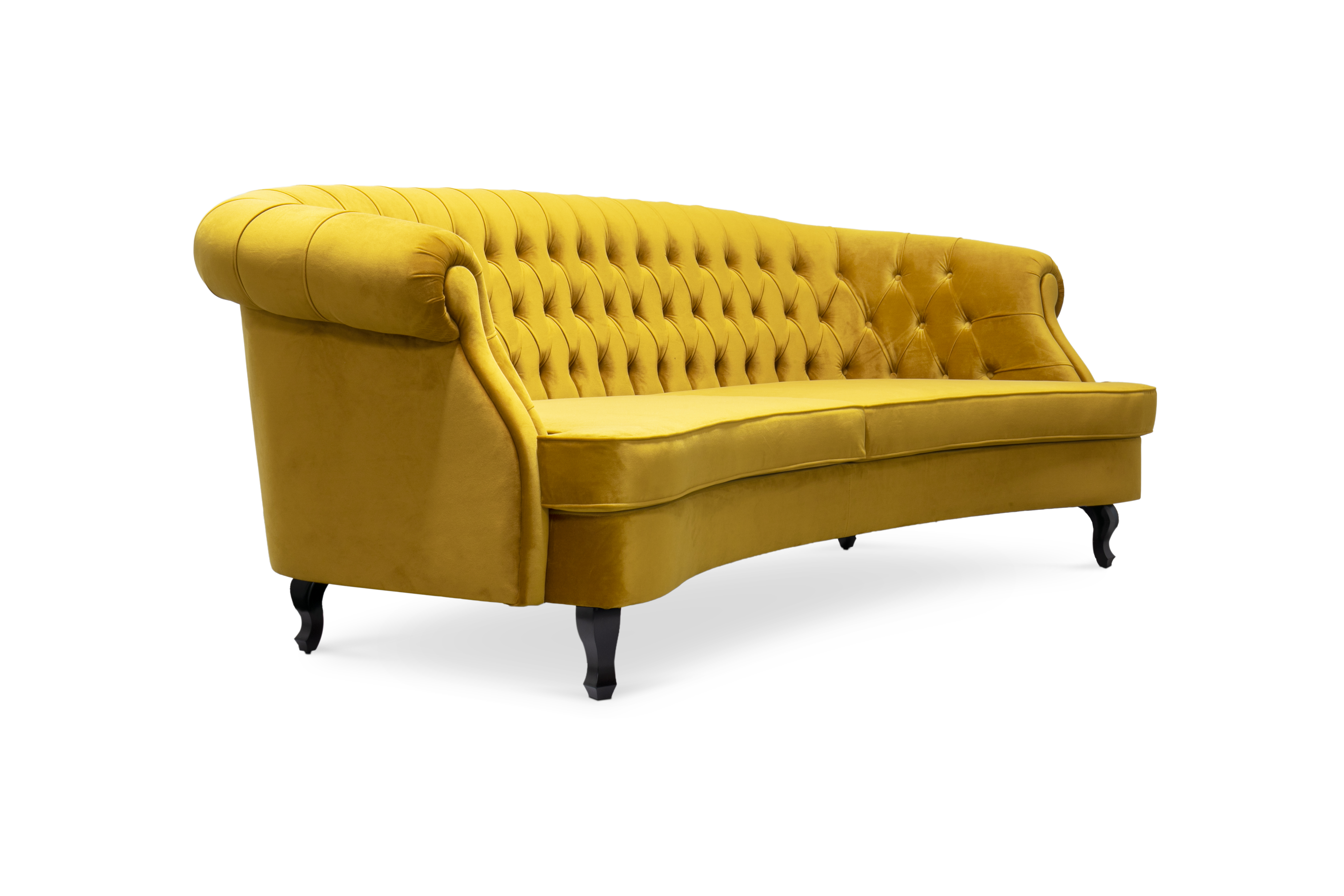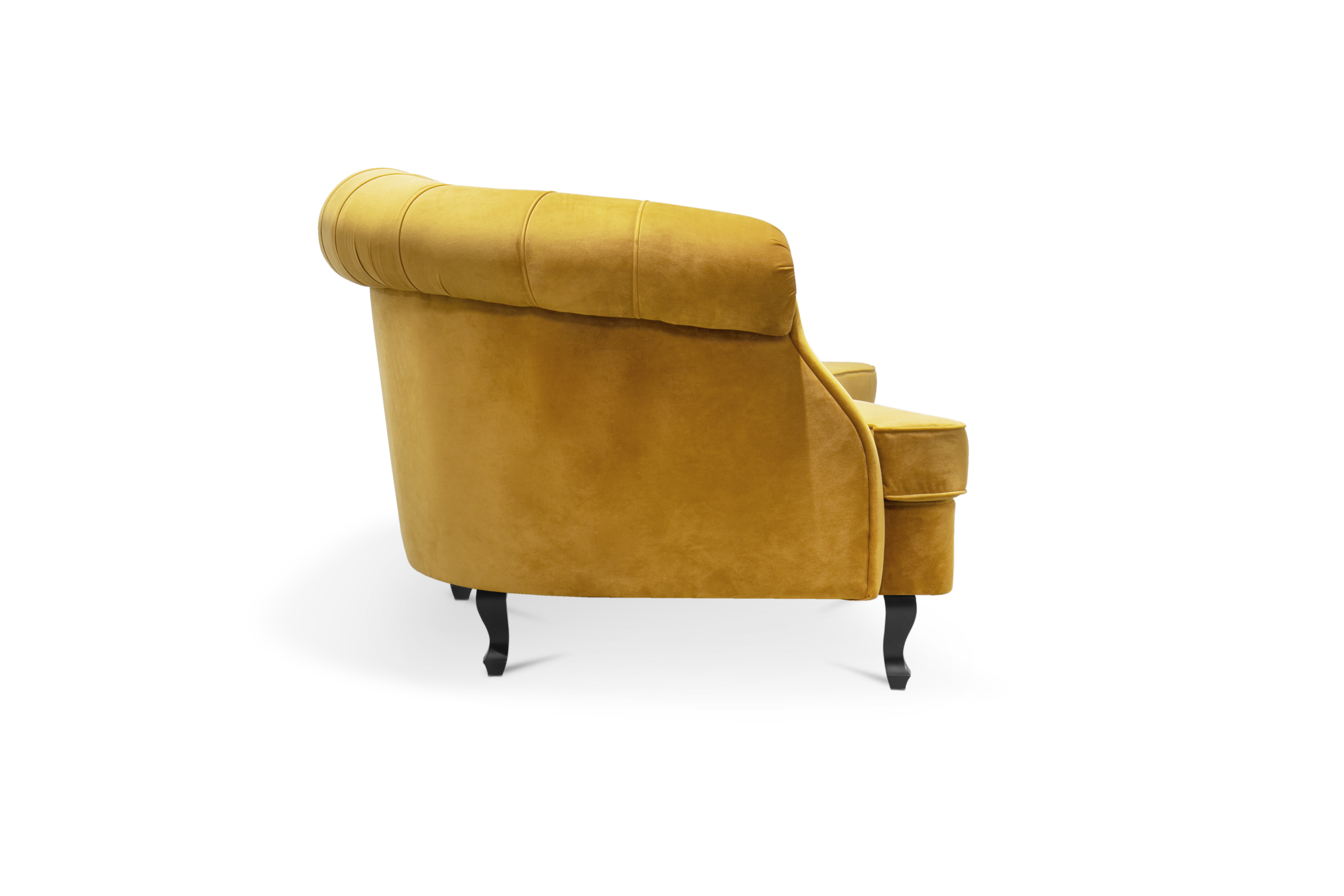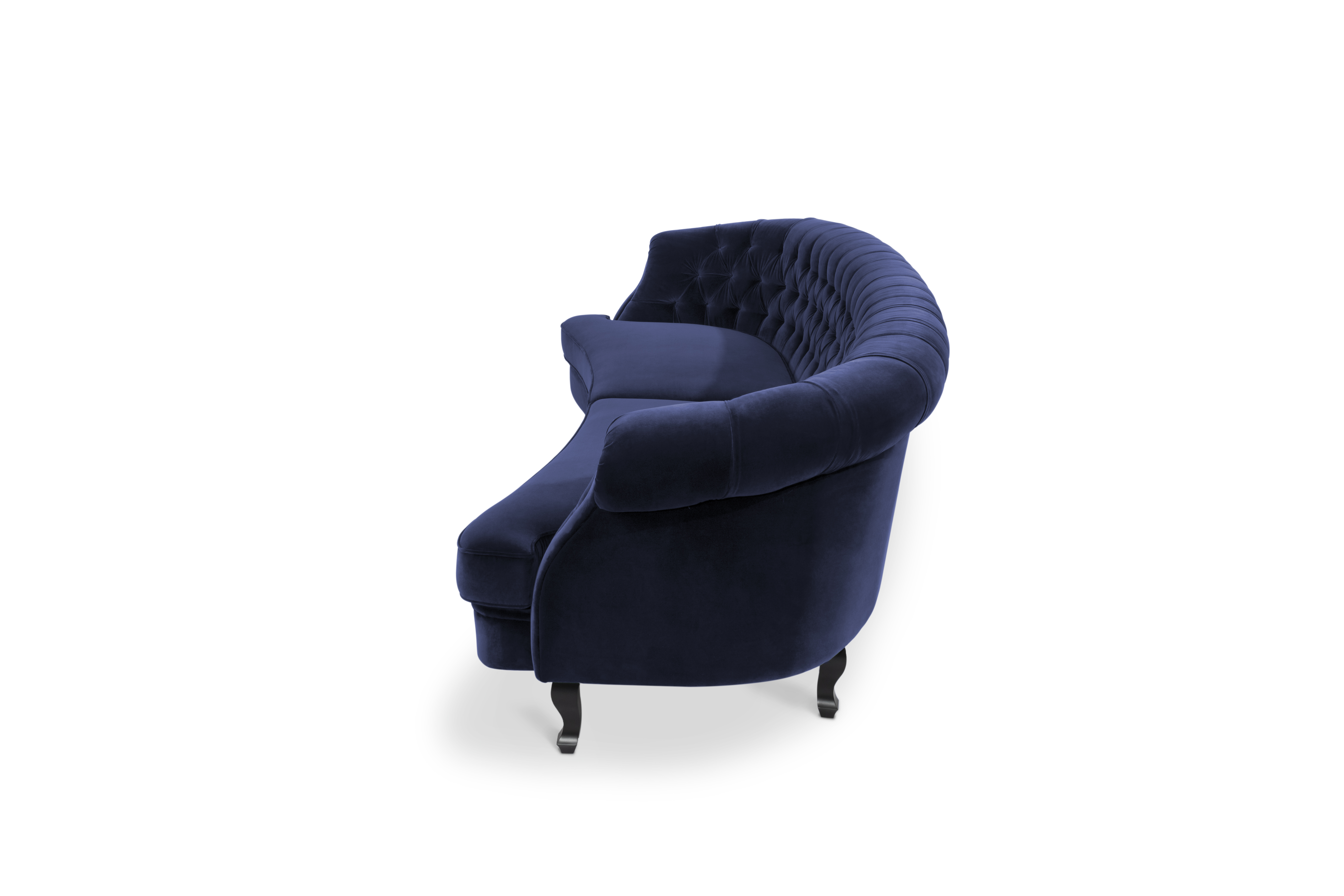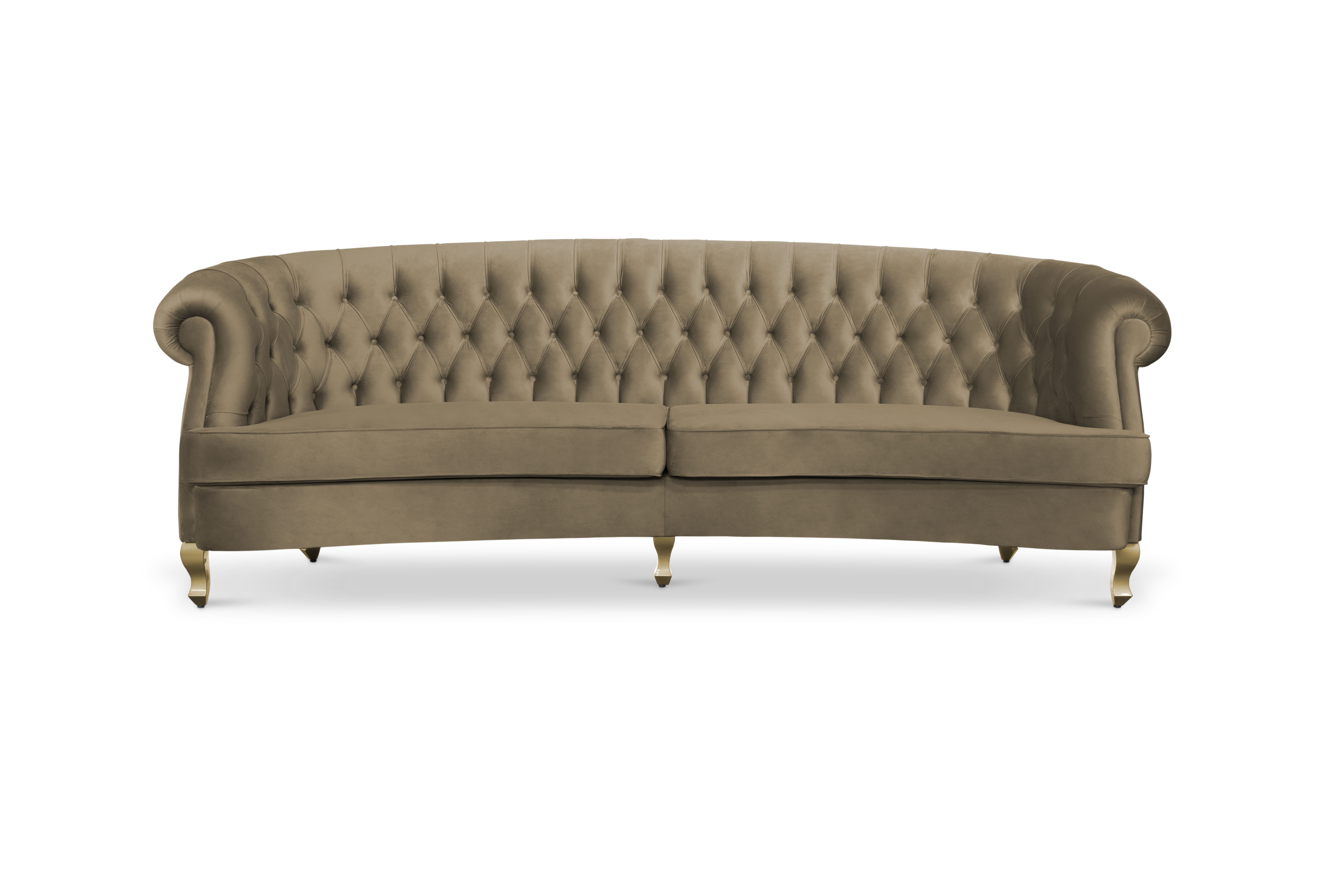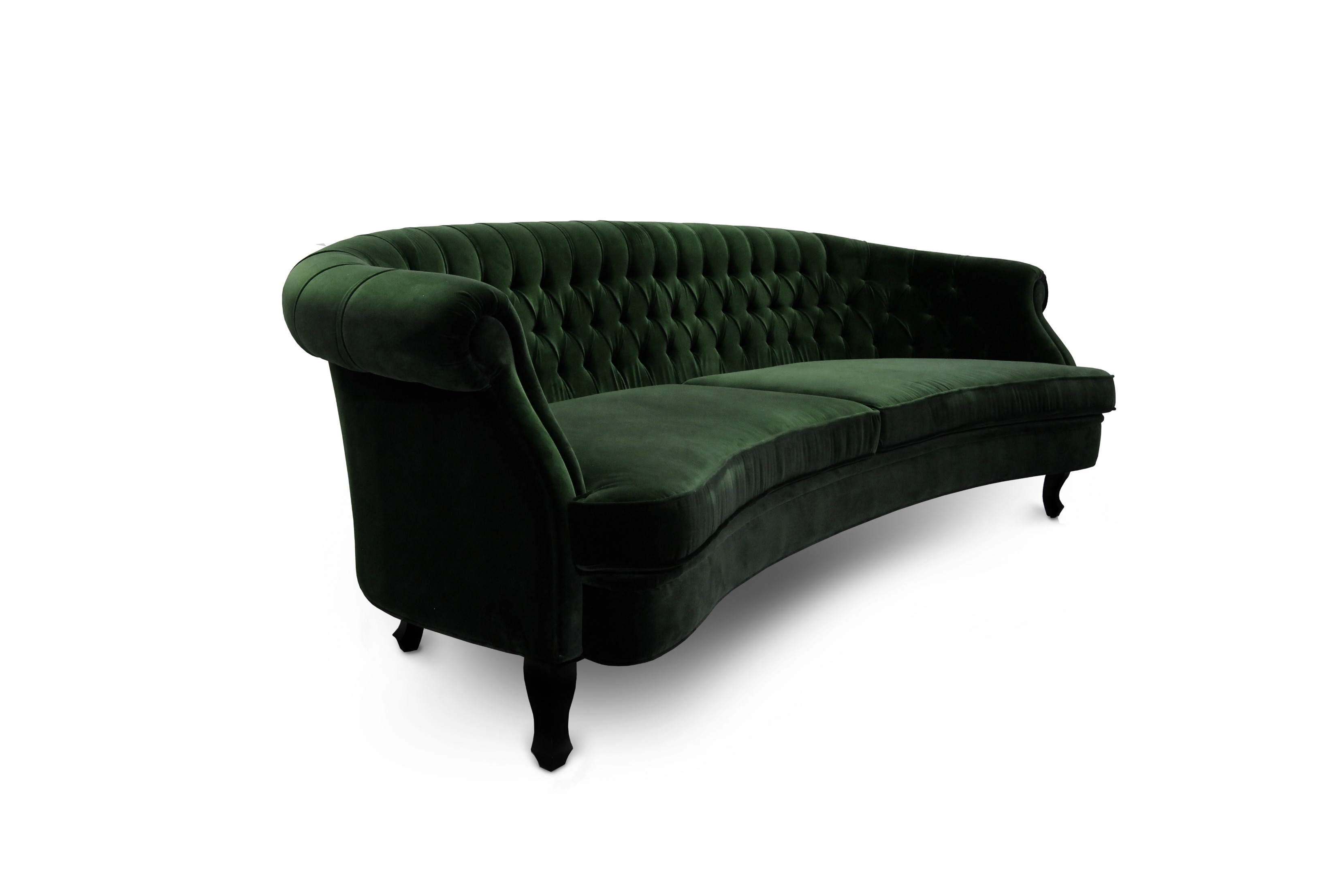 The Scottish Loch Maree is surrounded by a picturesque mountain with a rugged landscape. MAREE Sofa portrays that rough landscape softened by the tufted cotton velvet. This impressive modern living room sofa upholstered in velvet has legs in matte lacquer, giving a modern flair to the classic chesterfield sofa.