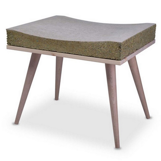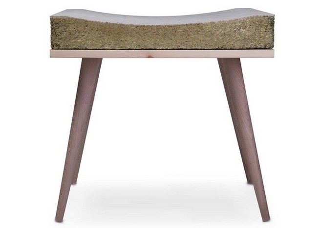 Named Chayr, the stool comprises four legs and a rectangular seat base – all made from beech – topped with the Ekolithos cushion. The design is inspired by the use of both hay bales and grassy spots used as seating places throughout the ages.