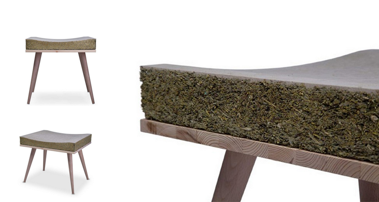 Italian studio Henry&Co has used a material created by binding hay and grass to form the seat of this untreated beech wood stool. Henry&Co designed the stool to fit a “circular economy” model, so chose sustainable and recyclable materials, which included both the beech wood and Ekolithos – a material made from hay and grass fibres.