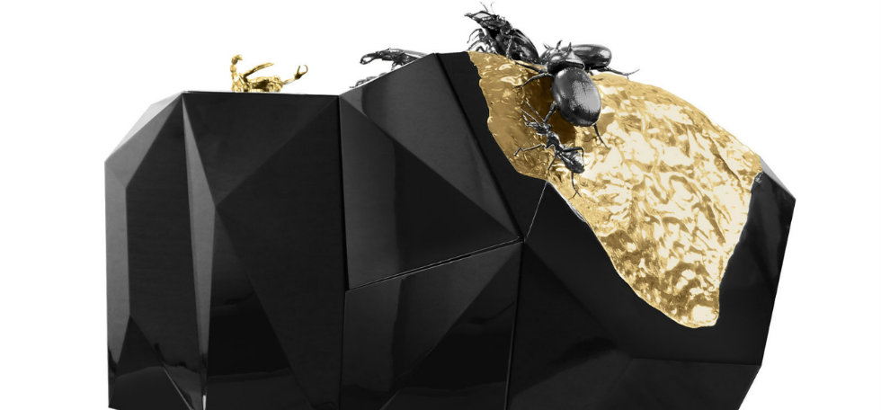 Boca do Lobo’s newly released Metamorphosis family plays on that very notion, where insects take the spotlight in a territorial dispute over the Convex and Concave mirrors, as well as the redesigned Diamond sideboard.