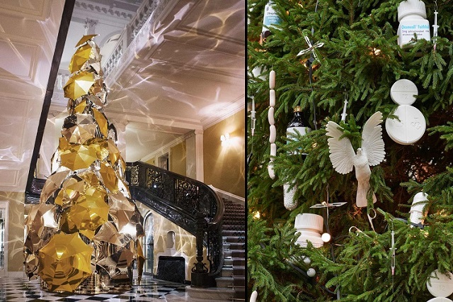 Bonus: At sister hotel the Connaught, artist Damien Hirst was enlisted to decorate the property’s inaugural outdoor tree. He’s made made ornaments, fittingly odd, from medical instruments and pills and has strung garlands of sausages on the 30-foot Norway spruce.