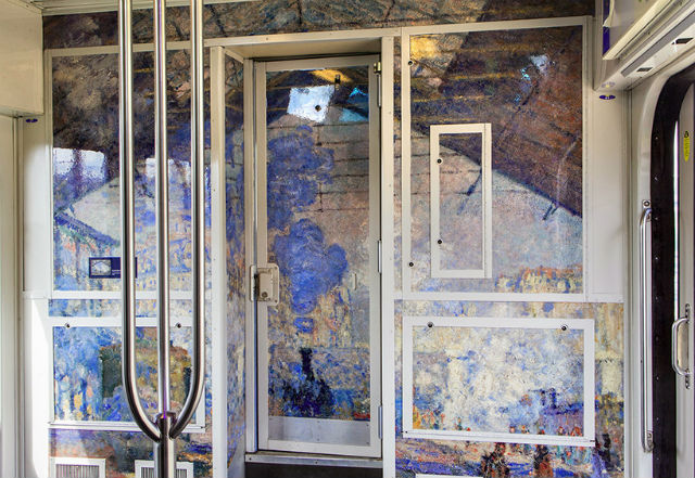 These days riding a train in France is a cultural experience. Why – you ask? Because France’s national state-owned rail service – SNCF – has collaborated with 3m – an American manufacturing conglomerate – to bring high impressionist art to the interior of their trains. This means that SNCF has taken its public train system and filled it with graphic film of impressionist paintings, art from the Musee d’Orsay, architectural patterns from Versailles and more.
