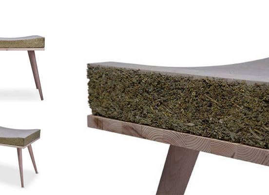 Italian studio Henry&Co has used a material created by binding hay and grass to form the seat of this untreated…