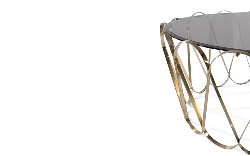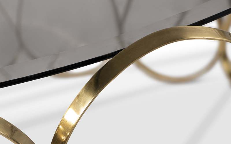 Aquarius is a very unique round center table. An evocative of a fine jewelry piece, this striking table blends a certain delicacy with its contrasting strong character. Perfect for your contemporary living room, Aquarius will add a touch of elegance to your home décor. Its tempered smoked glass top rests on a perfectly curved polished stainless steel base.